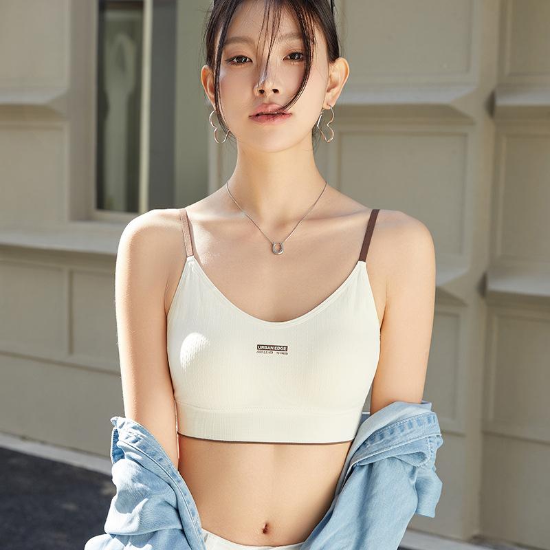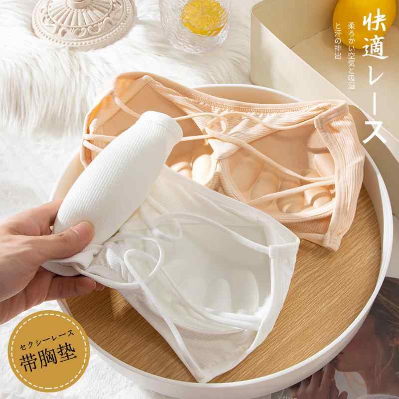 2ブラジャー レディース 小胸 一体型 カップ付き クロスストラップ キャミソール インナー 美背 裹胸 綿 聚?