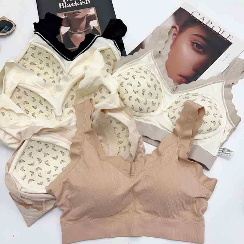 ブラジャー レディース かわいい レース ノンワイヤー リブ 美背 インナー 一体型 カップ 接触冷感
