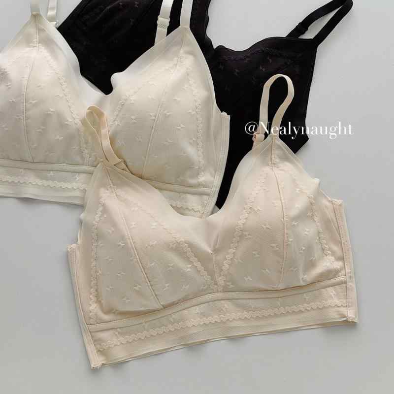 ブラジャー レディース レース リブ 無縫製 一体型 カップ 薄型 通気性 百搭