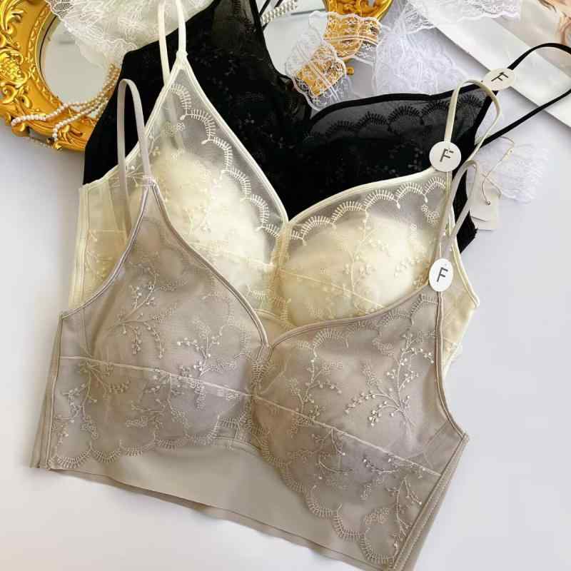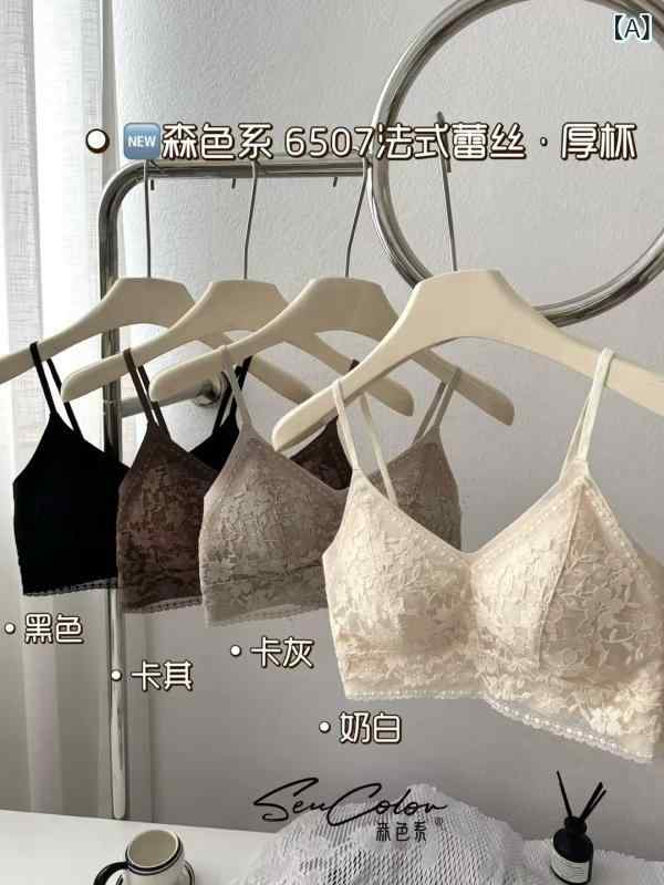 ブラジャー レディース 薄型 ノンワイヤー レース 通気性 快適 美背 ズレ防止・製品カテゴリ: 裹胸/抹胸・機能: 聚?, 上托, 調整型, 快適・衣長: 及胸・カラー: ブラック, ?色, 香?色・サイズ: 均?・スタイル: 法式・模杯タイプ: 薄模杯・罩杯タイプ: 三角杯