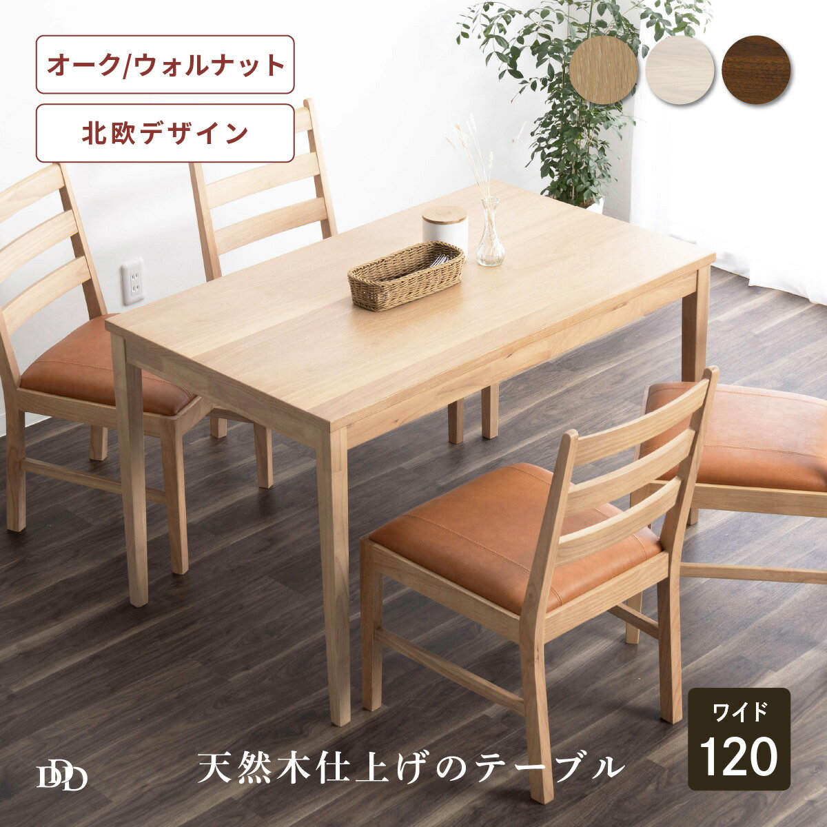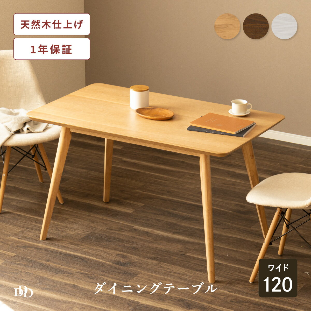 商品のご案内 120cm 幅 木製 ダイニングテーブル (WH/WN/SNOW) サイズ 幅 120 奥行き 70 高さ 70 cm 重量 20.5kg 素材 [天板] (WH/SNOW) ホワイトオーク突板 (WN) ウォールナット突板[脚] ラバーウッド カラー WH (オークライト)WN (ウォールナット)SNOW (スノー) シリーズ商品 75 テーブル 耐荷重 ----- 梱包サイズ 幅 123 奥行き 73 高さ 10 cm (重量) 25kg 備考 組み立て家具 (工具入り)表示のサイズは商品により多少の誤差を生じることがあります。掲載されている商品のカラー写真及びカラーサンプルについては、実際の色彩と多少異なる場合があります。あらかじめご了承下さい。 スタッフのおすすめポイント ゆったりしたサイズ感で、使い勝手抜群のテーブルを探していませんか?こちらの 幅120cm 木製 ダイニングテーブル はラバーウッド脚を採用した、ナチュラルでどんなインテリアにもマッチする一品です。 このテーブルの最大の特徴は、シンプルながらも温かみのあるデザイン。天板には自然の木目を生かした仕上げが施されており、優しい雰囲気を演出します。さらに、天板にはウレタン塗装が施されているため、耐久性が高く、汚れや水分にも強い仕様になっています。脚と幕板にはラバーウッドを使用しており、安定感と耐久性を兼ね備えています。北欧風やナチュラル系のインテリアに特におすすめです。 幅120cmという余裕あるサイズ感は、一人暮らしや二人暮らしの方にぴったり。来客時にも便利な2〜4人での食事を快適に楽しめるサイズ感です。食卓や作業台など、多用途にご使用いただけます。 このテーブルは、インテリアやお好みに合わせて選べる3つのカラー展開があります。 WH (オークライト) 色明るく柔らかい色合いで、どんなお部屋にも馴染みます WN (ウォールナット) 色深みのある落ち着いた色味で、大人っぽい雰囲気を演出 SNOW (スノー) 色清潔感があり、お部屋を明るく見せます 120cm 幅 木製 ダイニングテーブルは、デザイン性と実用性を兼ね備えた万能アイテム。ラバーウッドの脚で安定感も抜群なので、長く愛用できること間違いなしです。さらに、オークライト、ウォールナット、スノーの3色展開で、どんなお部屋にもフィットします。天板のウレタン塗装による高い耐久性もポイント!ぜひ、この機会にお部屋に取り入れてみませんか?ナチュラルなインテリアが好きな方や、コンパクトでおしゃれなテーブルを探している方に、特におすすめです!