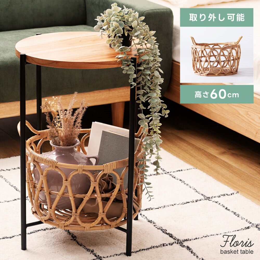 ▲ ソファカテゴリへ ▲ ▲ チェアカテゴリへ ▲ ▲ ごみ箱カテゴリへ ▲ お買い物の前に ≫ よくあるご質問 ≫ 商品説明 ●高いデザイン性で、お洒落な空間作り。テーブルも収納もこれひとつで。 サイドテーブルとしての使用はもちろん、収納やディスプレイも楽しめるラタン製バスケットも付いたテーブル“Floris”。 直径40cmの天板は飲み物やお菓子、ノートパソコンなども置ける便利なサイズ感でリラックスタイムを快適にします。 また、ラタン製バスケットが付いておりブランケットや雑誌などの小物もサッと収納することが出来ます。 ●直径40cmの使いやすい天板サイズリラックスタイムに丁度良い 直径は約40cmと、飲み物を置いたり読書やノートパソコンなどちょっとした作業をするのに最適なサイズ設計。 大きすぎず小さすぎないサイズ感で、リラックスタイムが快適に。 ●サイドテーブルとして快適に使える高さ約60cm 高さは約60cmとなっており、ソファやベッドに合わせたときに低すぎない設計に。 様々なシーンにフィットしやすいサイズ設計となっております。 ●見た目もかわいいラタンバスケット。リビングの小物もお洒落に収納。 ブランケットやクッション、本やスリッパなどリビングで散らかりがちな小物をバスケットにすっきりと収納することができます。 バスケットに収めることで見栄えもよくなります。 ●ディスプレイスタンドとしても テーブルや通常の収納としての実用性もありながら、洗練されたデザインでディスプレイスタンドとしての使い方も。 植物との相性もよく、花台として使用しても見栄えよくインテリアの一部としてお部屋に馴染みます。 検索キーワード: サイドテーブル テーブル バスケット 収納 ラタン かご 籐 天然木 木製 シンプル おしゃれ 小物収納 ナチュラル 軽量 軽い 移動 ディスプレイ 持ち手 ソファ ベッド ナイトテーブル 花台 読書 衣類収納 本 雑誌 スリッパ スチール メーカー希望小売価格はメーカーカタログに基づいて掲載していますページトップ スペック 商品詳細 サイズ: 約幅43.5×奥行43.5×高さ60cm 商品重量:約6kg 耐荷重:約5kg 材 質: 天然木(ミンディ)/ラタン/ラッカー塗装/スチール(粉体塗装) 組 立:完成品 送 料:送料無料 ※北海道・沖縄・離島へのお届けは別途送料が加算されます。 検索キーワード: サイドテーブル テーブル バスケットテーブル バスケット 収納 ラタン かご 籐 天然木 木製 シンプル おしゃれ リビング 小物収納 ナチュラル 軽量 軽い 移動 ディスプレイ ●高いデザイン性で、お洒落な空間作り。テーブルも収納もこれひとつで。 サイドテーブルとしての使用はもちろん、収納やディスプレイも楽しめるラタン製バスケットも付いたテーブル“Floris”。 直径40cmの天板は飲み物やお菓子、ノートパソコンなども置ける便利なサイズ感でリラックスタイムを快適にします。 また、ラタン製バスケットが付いておりブランケットや雑誌などの小物もサッと収納することが出来ます。 ●直径40cmの使いやすい天板サイズリラックスタイムに丁度良い 直径は約40cmと、飲み物を置いたり読書やノートパソコンなどちょっとした作業をするのに最適なサイズ設計。 大きすぎず小さすぎないサイズ感で、リラックスタイムが快適に。 ●サイドテーブルとして快適に使える高さ約60cm 高さは約60cmとなっており、ソファやベッドに合わせたときに低すぎない設計に。 様々なシーンにフィットしやすいサイズ設計となっております。 ●見た目もかわいいラタンバスケット。リビングの小物もお洒落に収納。 ブランケットやクッション、本やスリッパなどリビングで散らかりがちな小物をバスケットにすっきりと収納することができます。 バスケットに収めることで見栄えもよくなります。 ●ディスプレイスタンドとしても テーブルや通常の収納としての実用性もありながら、洗練されたデザインでディスプレイスタンドとしての使い方も。 植物との相性もよく、花台として使用しても見栄えよくインテリアの一部としてお部屋に馴染みます。