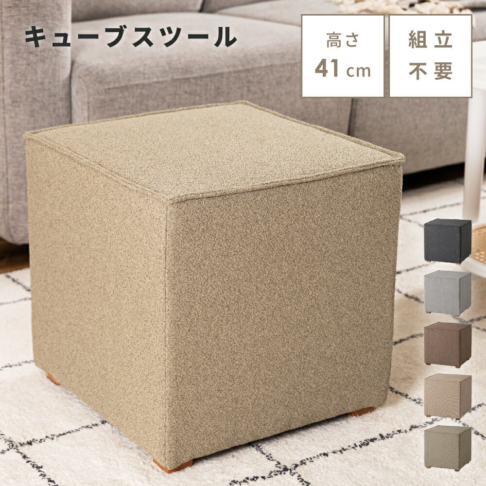 お買い物の前に ≫ よくあるご質問 ≫ 商品説明 ●使い勝手のいいシンプルなキューブ型スツール ●ローテーブルと合わせやすい高さ41cm リビングで快適にお使いいただける高さ設計です。 シンプルなキューブ型だから、リビングでも圧迫感が少なく、ぴったりくっつけて並べることができます。 ●座りやすい40×40cmの座面 座面は40×40cmとちょうどいいサイズ感になっています。 お部屋に馴染みやすい正方形デザインで、お好きな向きで設置できます。 ●さらっとしたファブリック生地 夏はべたつきにくく、冬はヒヤッとしにくいファブリック生地を使用しています。 オールシーズン快適で、耐久性があり、シワや型崩れに強いところも特徴的です。 メーカー希望小売価格はメーカーカタログに基づいて掲載していますページトップ スペック 商品詳細 サイズ: 幅40×奥行40×高さ41cm 材 質: 合板/ポリエステル/天然木(アッシュ)/ラッカー塗装 組 立: 組み立て不要 重 量: 約4.5kg 静的耐荷重: 約80kg 送 料:送料無料 ※北海道・沖縄・離島へのお届けは別途送料が加算されます。 検索キーワード: スツール キューブ キューブスツール スクエア 椅子 イス いす 四角 オットマン サイドテーブル リビング 玄関 寝室 クッション 軽量 軽い 北欧 ナチュラル シンプル ニュアンスカラー ダークグレー グレー 茶色 ベージュ カーキ アースカラー ●使い勝手のいいシンプルなキューブ型スツール ●ローテーブルと合わせやすい高さ41cm リビングで快適にお使いいただける高さ設計です。 シンプルなキューブ型だから、リビングでも圧迫感が少なく、ぴったりくっつけて並べることができます。 ●座りやすい40×40cmの座面 座面は40×40cmとちょうどいいサイズ感になっています。 お部屋に馴染みやすい正方形デザインで、お好きな向きで設置できます。 ●さらっとしたファブリック生地 夏はべたつきにくく、冬はヒヤッとしにくいファブリック生地を使用しています。 オールシーズン快適で、耐久性があり、シワや型崩れに強いところも特徴的です。