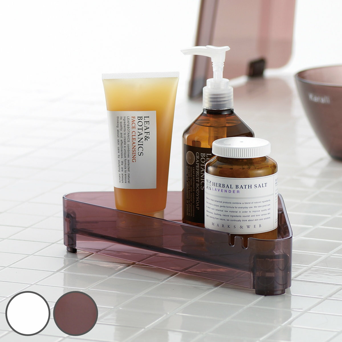サイズ約 幅26.5×奥行15.5×高さ5(cm)重量約 160g内容量1個材質トレー:AS樹脂、ゴム脚:ポリエチレン種類ホワイト、スモークブラウン生産国中国製耐熱温度90度耐荷重3kg区分返品・キャンセル区分(小型商品)ギフトラッピングページを見る●浴室小物をすっきり収納できるコーナーラックです。●浴室のコーナーを有効活用できるので省スペースです。●水抜き穴があるので、水がたまりにくく清潔に使えます。●脚にゴムが付いているのでズレやキズを防止します。●清潔感のあるシンプルなデザインで、どんな浴室にも馴染みやすいです。おすすめポイント浴室の空間を有効活用できるコーナーラック浴室小物をすっきり収納できるコーナーラックです。浴室のコーナーを有効活用できるので省スペースです。清潔感のあるシンプルなデザインで、どんな浴室にも馴染みやすいです。商品詳細水がたまりにくい水抜き穴付き水抜き穴があるので、水がたまりにくく清潔に使えます。ズレやキズを防ぐゴム脚付き脚にゴムが付いているのでズレやキズを防止します。カラーシリーズ紹介シャンプースタンド1段シャンプースタンド2段コーナーラック1段【▲このページの商品】コーナーラック2段シャワーフックトレーシャワーフックラック関連キーワード:シャンプーボトル収納 ディスペンサー置き ボディーソープ ソープ 液体せっけん チューブ 小物収納 バス小物 手洗い 洗面 洗面収納 洗面所収納 風呂用品 お風呂用品 風呂グッズ バス用品 バスグッズ お風呂グッズ バスアイテム 洗面グッズ ナチュラル シンプル しんぷる 無地 おしゃれ オシャレ お洒落 モダン シック 高級感 ホワイト ほわいと 白 しろ ブラウン ぶらうん 茶色 ちゃいろ クリア 透明 LH20086関連商品はこちらバス収納 コーナーラック 2段 3,070円ディスペンサースタンド 1段 シャンプースタン1,000円ディスペンサースタンド 2段 シャンプースタン3,070円バス収納 ディスペンサーラック 木製 シャンプ9,480円ディスペンサーラック サリナ ボトルスタンド 2,550円ディスペンサートレー シャンプー台 桧 ひのき5,680円コーナーラック 2段 スパージュ コーナースタ2,790円バスコーナースタンド 2段 バススタイル 1,970円バスコーナースタンド 3段 バススタイル 3,260円バスラック ステンレス 大 3,570円バスラック ステンレス 中 2,950円ボトルスタンド バススタイル 1,280円