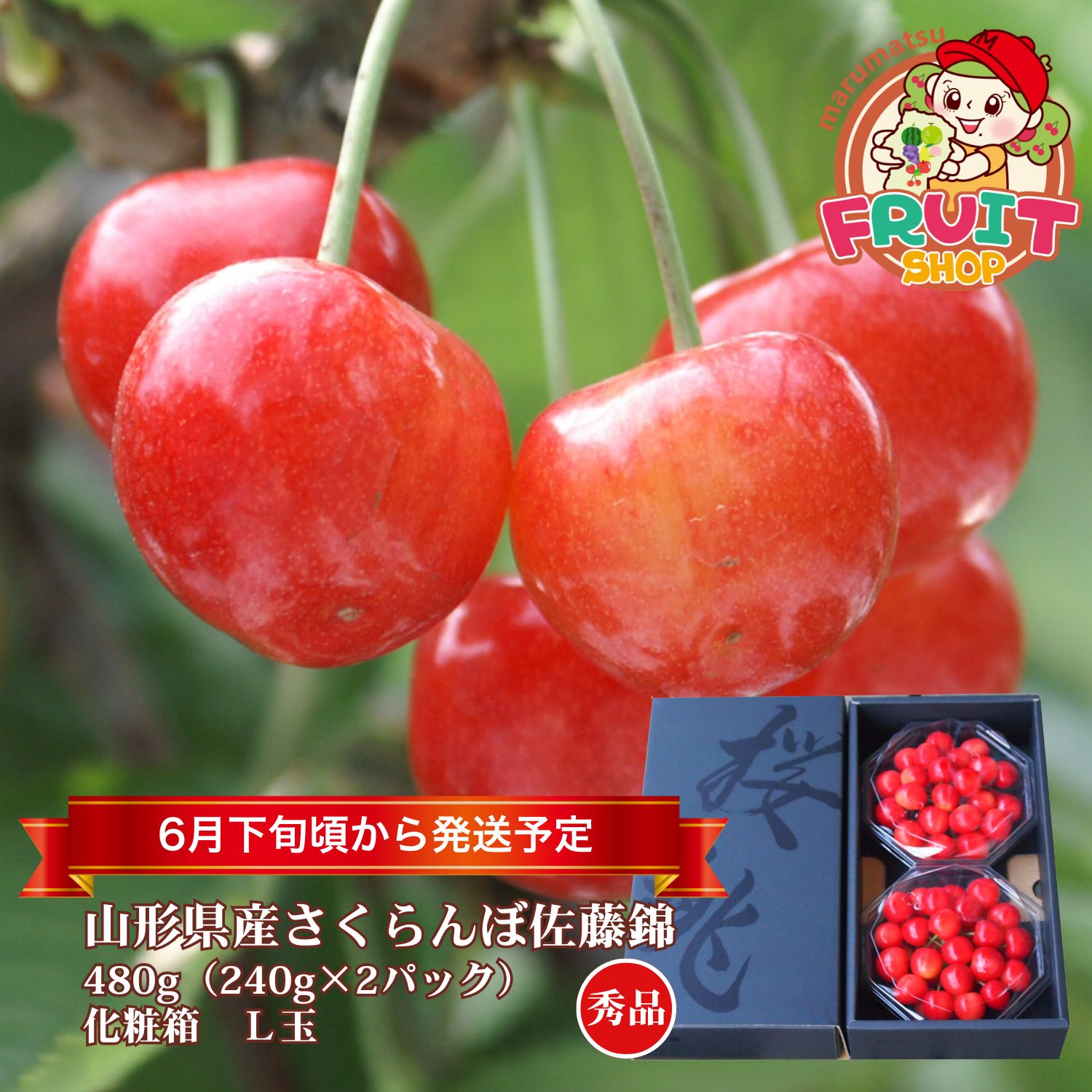 商品詳細 生産量日本一“山形県”名産のさくらんぼ佐藤錦です。人気の弾けるようなプリプリの粒は、甘さと酸味のバランスが良いのが特徴。当店ではL玉以上をギフト規格としておりますので、この規格はお手頃価格のご家庭用としてご紹介いたします! 産地 山形県 品種 山形県産さくらんぼ「佐藤錦」 内容量 秀品 L玉 500g(500g×1P)バラ詰 送料 冷蔵便 送料無料(2箱まで1梱包) ※ただし沖縄・一部離島は受付不可 発送時期 6月中旬頃?6月末頃まで※天候によって時期がずれる場合がございます。 ※お届け日指定は承れせんのでご了承ください。※仕入の状況により、時期が前後することがございます。 ご注意 他の商品(他品種・他規格)との同梱はできません。※人気商品につきお届けまでお時間をいただく場合がございます。商品の性質上、 1日の出荷数量が限られているため、何卒、ご了承の上ご注文いただけますようお願い申し上げます。 お支払い クレジットカード、前払い決済・後払い決済。 出荷終了時期が差し迫っている商品の前払い決済はご注文をキャンセルさせていただく場合がございます。予めご了承ください。 商品サイズ 300×200×80(mm)