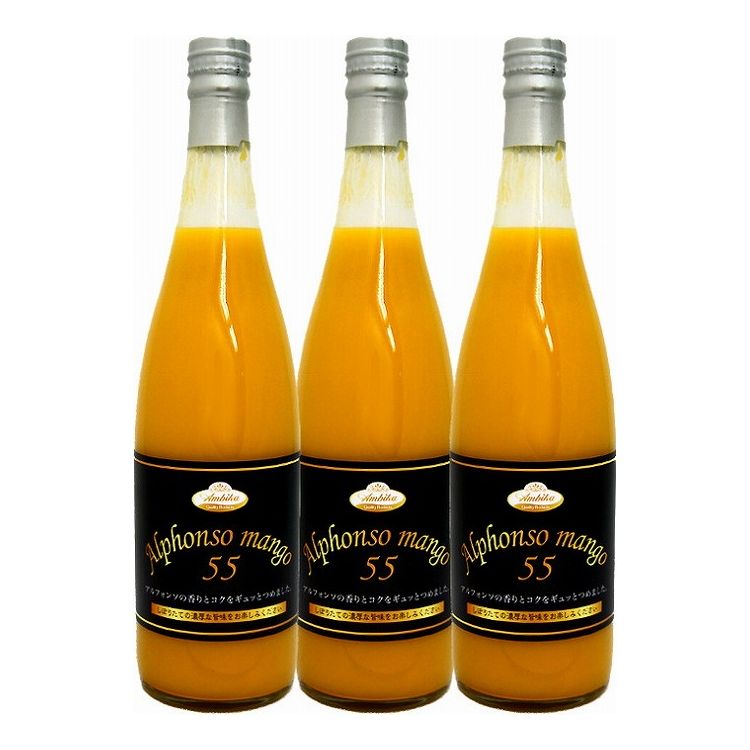 【商品詳細】マンゴーの起源はインドから始まり4000年前から栽培している果物です。中でも甘さと酸味のバランスが絶妙な果実「アルフォンソマンゴー」を55%使用した、濃厚ながらも後味抜群のマンゴージュースです。マンゴーの王様とも呼ばれる「アルフォンソマンゴー」の果実をまるで食べているような味わいと香りです。ビタミンA、βカロチン、ビタミンC、葉酸等の栄養素が豊富に含まれています。保存方法:常温商品区分:食品内容量:720ml×3本原材料(アレルギー表記含む):アルフォンソマンゴー、砂糖メーカー名:(株)アンビカコーポ生産国・加工国:日本賞味期限:製造日より540日【代引きについて】こちらの商品は、代引きでの出荷は受け付けておりません。【送料について】北海道、沖縄、離島は送料を頂きます。