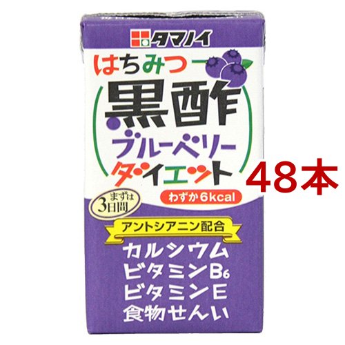 お店TOP>健康食品>お酢>酢飲料>黒酢飲料>タマノイ はちみつ黒酢ブルーベリーダイエット (125ml*24本入*2コセット)【タマノイ はちみつ黒酢ブルーベリーダイエットの商品詳細】●アントシアニン配合。●多くの方に支持されているブルーベリーは黒酢との相性も良く、毎日続けられるおいしい味に仕上がりました。●長年愛されている、はちみつ黒酢ダイエットシリーズです。●1本あたりわずか6KcaL。【召し上がり方】・冷すとより美味しくお飲みいただけます。【タマノイ はちみつ黒酢ブルーベリーダイエットの原材料】黒酢、果汁(ぶどう、ブルーベリー)、水溶性食物繊維、はちみつ、ブルーベリーエキス、酸味料、香料、増粘多糖類、炭酸カルシウム、甘味料(スクラロース、アセスルファムK)、果実色素、V.B6、V.E【栄養成分】(1本(125mL)あたり)エネルギー・・・6KcaLたんぱく質・・・0g脂質・・・0g糖質・・・1.3g食物せんい・・・0.3gナトリウム・・・39mgカルシウム・・・29mgビタミンB5・・・0.3mgビタミンE・・・0.3mg【注意事項】・賞味期限は開封前の日付です。【原産国】日本【ブランド】はちみつ黒酢【発売元、製造元、輸入元又は販売元】タマノイ酢※説明文は単品の内容です。リニューアルに伴い、パッケージ・内容等予告なく変更する場合がございます。予めご了承ください。(蜂蜜黒酢 ハチミツ黒酢)・単品JAN:4902087222312タマノイ酢590-0940 大阪府堺市堺区車之町西1-1-320120-33-4104広告文責:楽天グループ株式会社電話:050-5577-5043[調味料/ブランド:はちみつ黒酢/]