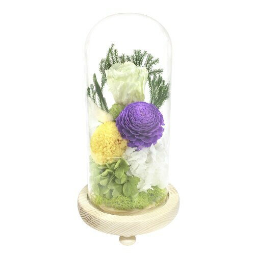 お供えガラスドーム ガラスドーム 日菜乃/グリーン 生産国:中国(組立は日本) サイズ:[縦]約21cm/[横]約11cm/[奥行]約11cm ※サイズは当店計測の実寸サイズです。実際の商品ならびにメーカー表記サイズとは多少の誤差が生じる場合がございます。あらかじめご了承ください。 重量:約399g ※紗和(さわ)の商品の重量です。 素材:[花材]プリザーブドフラワー・ドライフラワー(自然素材)フローラルフォーム(フェノール樹脂)[ドーム]ガラス[台座]木製 大切な方を偲んで、いつまでも綺麗なお花を捧げたい・・・。色彩豊かなプリザーブドフラワーをガラス容器に閉じ込めた「お供え ガラスドーム」 プリザーブドフラワーとは、本物の生花を鮮やかな色彩のまま加工したもので、生花よりも長期間その美しさを鑑賞することができるのが特徴。 カーネーションやアジサイ、ボタンフラワー。季節ごとに咲く花々を、生花のみずみずしい質感はそのままにドームの中にギュッと凝縮。 透明なガラスドームに覆われているので、お花がホコリで汚れてしまう心配がなく、手間のかかる水やりや水換えも一切不要。 お花が枯れずに長持ちするため、仏壇の前棚(ぜんだな)や経机を汚さずにいつでも清潔。 ナチュラルな白木の台座タイプとシックな黒色の台座タイプ、仏壇の雰囲気に合わせてコーディネートが可能。 商品コード62079988053商品名お供えガラスドーム ガラスドーム 日菜乃/グリーン型番C36340サイズガラスドームカラー日菜乃/グリーン※他モールでも併売しているため、タイミングによって在庫切れの可能性がございます。その際は、別途ご連絡させていただきます。※他モールでも併売しているため、タイミングによって在庫切れの可能性がございます。その際は、別途ご連絡させていただきます。