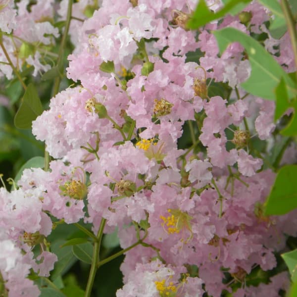 成長時樹高1.5m 紅水晶のような透明感のある花色の花木 蜜源植物 7〜9月開花花木 庭木の苗/サルスベリ(百日紅):ローズクォーツ5号ポットローズクォーツは小型のサルスベリで樹高は約1.5mくらいまでにまとまります。紅水晶のような透明感のある白〜ピンク色の花から名付けられたオリジナル品種です。ゆったりとした大ぶりの花序が特徴です。鉢で育てても花を楽しむことができます。また夏の貴重な蜜源植物でもあります。学名:Lagerstroemia ‘Rose Quartz'タイプ:耐寒性落葉低木栽培適地:南東北地方以南開花期:7月〜9月樹高:1.5m樹幅:1.5m用途:鉢植え、庭植え栽培方法:日当たり・水はけのよい場所に植え付けてください。鉢植えの場合は、ひどく乾燥させると花つきが悪くなりますので、水を切らさないように管理してください。9月と2〜3月に根元付近に固形肥料を施します。病虫害はカイガラムシに注意します。発生した場合は指でこすり落としたり、冬にマシン油乳剤を散布して駆除します。植え替えは3月または11月が適期です。苗が小さいうちは花の色が薄くなる場合がございますが、成長に伴って本来の色が出るようになります。お届けする苗は5号(直径15cm)ポット植え、樹高約50-70cm前後です。樹高は入荷時期により変動することがあります。夏場は、高温の為葉が茶褐色になっていたり、多少の虫食いの跡があることがあります。冬季は落葉の状態です。写真は成長・開花時のイメージです。サルスベリ(百日紅):ローズクォーツ5号ポットの栽培ガイド記念樹のすすめ魅力的な緑陰樹