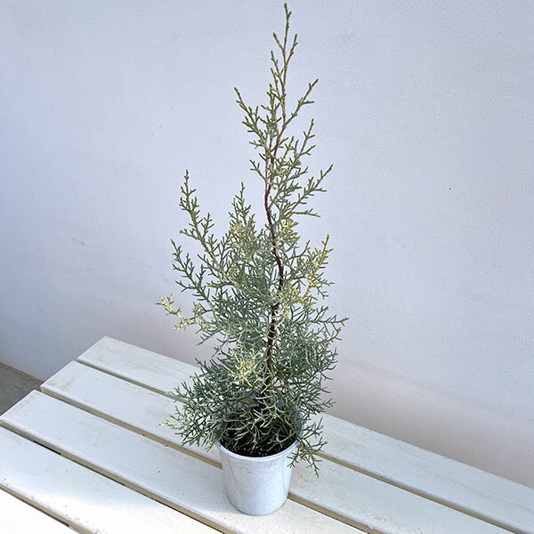 クプレッサス シルバーリーフ アリゾナイトスギ ガーデニング・造園に 常緑樹花木 庭木の苗/コニファー(立ち性):ブルーアイス4号鉢植えガーデニングに人気の丈夫で管理しやすいコニファーです。細く上に伸びるフォルムなので狭いスペースにも植えやすい品種です。庭園樹として、また列植えや生垣にも適しています。ブルーアイスは北アメリカからメキシコにかけて自生する耐寒性常緑高木です。銀青色の葉が涼しげな樹姿が特徴で、人気の高い品種です。庭木、鉢植え、コンテナに適しています。クプレッサス類はあまり寒さに強くないのですが、この品種は東北地方から九州まで植え付けできます。樹形広円錐形タイプヒノキ科イトスギ属の耐寒性常緑高木植栽適地東北地方から九州まで樹高6m以上葉張り1.5〜2m日照日向むき栽培方法日当たりの良い場所、または少し日陰になる場所が適しています。鉢植えでも育てることができます。過湿にならないように、腐葉土を多くすきこんで、やや土を盛り上げるように植え付けてください。根土をくずさないようにそっとポットから抜いてそのまま植えてください。耐寒性はありますが、夏の高温はやや苦手なので、夏場は庭植えの場合も朝水遣りをしてください。剪定は不要で、そのままで美しいロケット型の樹形になります。不要な部分は手で摘み取る程度に剪定してください。鉢植えの場合は根づまりしやすいので、2年に1回春または秋にひとまわり大きな鉢に植え替えてください。4号(直径12cm)鉢植え、樹高約30〜50cmです。樹高は多少変動します。写真はイメージです。