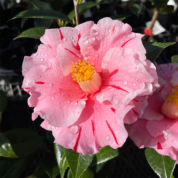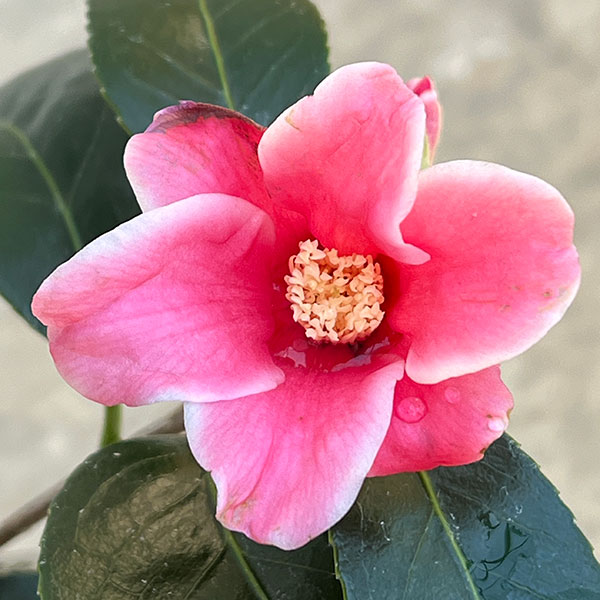 前田ナーセリー特選品種 2月〜4月開花花木 庭木の苗/ツバキ(椿):サニーサイド 4号ポット国内の古典品種から海外の希少種・最新品種まで、幅広く優れた椿の収集とオリジナル品種の育成を行う愛知県の「前田ナーセリー」の椿苗です。サニーサイドはアメリカ・ヌチオ農園で作出された洋種椿のひとつ。2015年作出です。鮮やかな桃色と白色のグラデーションが美しい、一重の椀咲〜ラッパ咲、筒藥、中輪です。タイプ:ツバキ科ツバキ属の耐寒性常緑小高木樹高:2〜4m開花期:3〜4月栽培適地:東北地方以南日照:日向または半日陰(開花するようになると日向のほうが適しています)栽培方法日当たり、水はけの良い場所を好みます。酸性土を好むので、植え付けの際に植え穴にピートモス、腐葉土またはブルーベリー栽培用土などを混ぜ込んでください。2〜3月に寒肥として、油粕や骨粉を根元に施します。剪定は花後すぐに行います。葉芽の先に花がつくので、葉芽を残すように間引き剪定をします。夏に花芽が分化するので、夏以降は枝を切らないようにしてください。ツバキには4月と7月頃にチャドクガが発生しやすいので、殺虫剤で駆除してください。4号(直径12cm)ポット植え、樹高約40cmです。写真は成長・開花時のイメージです。