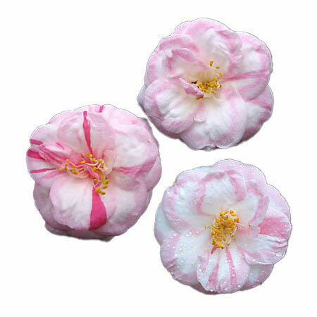 3月〜4月開花 淡桃色に紅絞り中大輪のれんげ性八重咲き NHK趣味の園芸26年1月号掲載花木 庭木の苗/ツバキ(椿):春の台(はるのうてな)4号ポット椿は古来庭植えや鉢植えのほか茶花としても愛好されてきました。育てやすい丈夫な花です。記念樹としても最適です。春の台(はるのうてな)は淡桃色に紅絞りの入った花を咲かせます。花は中大輪のれんげ性八重咲きです。咲き進んでも立体的な花姿を保つ美しい品種です。絞りの入り方は花により若干異なります。タイプツバキ科ツバキ属の耐寒性常緑小高木栽培適地東北地方以南樹高2〜4m開花期3〜4月花色桃植え付け適期9〜11月、3〜4月日照日向または半日陰(開花するようになると日向のほうが適しています)栽培方法日当たり、水はけの良い場所を好みます。酸性土を好むので、植え付けの際に植え穴にピートモス、腐葉土またはブルーベリー栽培用土などを混ぜ込んでください。2〜3月に寒肥として、油粕や骨粉を根元に施します。剪定は花後すぐに行います。葉芽の先に花がつくので、葉芽を残すように間引き剪定をします。夏に花芽が分化するので、夏以降は枝を切らないようにしてください。ツバキには4月と7月頃にチャドクガが発生しやすいので、殺虫剤で駆除してください。4号(直径12cm)ポット入り、樹高約30cmです。写真は成長時(開花時)のイメージです。樹高は多少変動する場合があります。