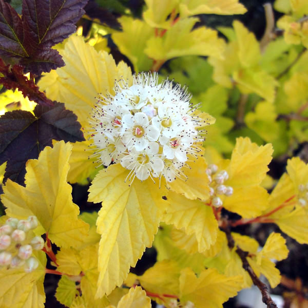 5〜6月開花 アメリカコデマリ フィソカルパス 黄金葉に白花の小型花木花木 庭木の苗/テマリシモツケ:ダーツゴールド4.5〜5号ポットテマリシモツケは庭園用カラーリーフプランツとして人気となっていますが、ダーツゴールドは黄金色の美しい葉を持つ品種です。非常に耐寒性の強いシュラブで、刈り込みをすることにより樹形が整います。夏にはピンクがかった白い牡丹のようなかわいい花を咲かせます。美しい葉色は春から秋まで楽しめます。鉢植えや庭園用におすすめです。学名:Physocarpus opulifolius 'Darts Gold'タイプ:バラ科の耐寒性落葉低木花期:5月〜6月樹高:1.5〜2m日照:日向むき栽培方法:よく肥えて湿り気のある土を好みます。植えつけ後は3月と開花後、9月頃に根元に緩効性肥料を施してください。特別な手入れは不要で、剪定も古くなって花つきの悪くなった枝を早春に根元から切り取る程度で大丈夫です。挿木でふやすことができます。お届けする苗は4.5〜5号(直径13.5〜15cm)ポット植え、樹高約30〜60cmです。樹高につきましては入荷時期により多少変動することがあります。夏以降は葉がきれいでない状態の場合があります。冬季は落葉の状態となります。写真は成長・開花時のイメージです。■この商品は第二配送センターよりお届けします。下記サービスについてはお受けできません。・メッセージカード・栽培ガイドの添付・ラッピング・代金引換決済・時間帯指定は地域によりご指定がお受けできない場合があります・配送業者の指定※本来は秋に落葉する品種ですが、苗木のうちは葉が少なく、昨今の猛暑の影響もあるため、初夏に葉焼けや斑点がある状態〜落葉した状態となります。お届け時に葉が無い場合があります。テマリシモツケ:ダーツゴールド4.5〜5号ポットの栽培ガイドインテリアにおすすめの、縁起の良い観葉植物美しいカラーリーフと繊細な花が楽しめるテマリシモツケ