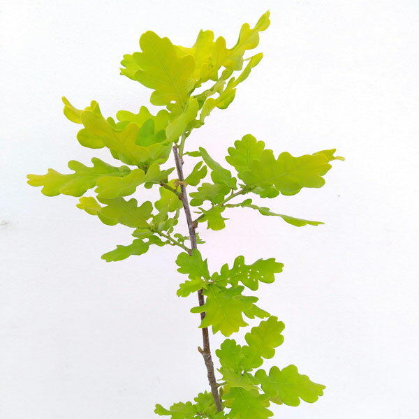 クエルカス・ロバー 黄金葉が美しい 樹木の苗木 カラーリーフ花木 庭木の苗/イギリスナラ:コンコルディア6号ポットヨーロッパ原産の欧州ナラの園芸種で、萌芽から遠めにもわかる鮮やかな黄金色の葉がたいへん美しい品種です。葉はのちに緑色に変わります。新芽とともに出てくる花穂も同じ黄金色です。また、秋には赤みを帯びた黄金色の紅葉も楽しめます。樹高は比較的低いので、シンボルツリーや庭園樹におすすめです。学名:Quercus rober 'Concordia'タイプ:ブナ科コナラ属の耐寒性落葉性高木樹高:3〜6m栽培適地:北海道南部以南日照:日向むき栽培方法:日照の良いところならば、よほど排水が悪くない限りどんな土にも生育します。耐寒性が強く植栽範囲は広い植物です。カミキリムシに注意してください。6号ポット植え、樹高20〜40cm前後の苗です。樹形や樹高は多少変動します。また苗の特性上、樹形は曲がりがある場合があります。まだ苗の状態なので支柱等で誘引すれば好みの樹形に仕立てることができます。夏以降は虫食いなどで葉が汚い状態の場合があります。写真は成長時のイメージです。