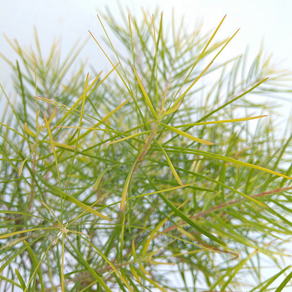 細長い独特の葉をもつネイティブプランツ 南アフリカ原産の常緑低木花木 庭木の苗/オーラックス:ブロンズヘイズ 5号鉢植えオーラックス・ブロンズヘイズは南アフリカ原産の常緑低木。細長い独特の葉をもち、春から夏にかけて黄白色の羽毛状の花を咲かせ、枝葉の先端は秋から冬にかけてブロンズ色になります。軸が赤く緑の葉との対比が独特の美しさで、庭木や切花、ドライフラワーとして人気があります。切花にしてもとても長持ちします。学名:Aulax cancellata 'Bronze Haze'タイプ:ヤマモガシ科の半耐寒性常緑低木開花期:5〜10月頃耐寒性:-2度まで樹高:1〜2m日照:日向〜半日陰むき栽培方法:日当たりの良い場所で、排水の良い土を好みます。育てやすい品種ですが、耐寒性がやや弱いので庭植えは関東地方以南の太平洋側で。冬場は根元に腐葉土などでマルチングし、防寒してください。寒い地方では鉢植えにして冬季は室内にとりこんでください。肥料は控えめに与えます。5号(直径約15cm)鉢植え、樹高約20〜30cmです。樹高は多少変動することがあります。写真は成長・開花時のイメージです。