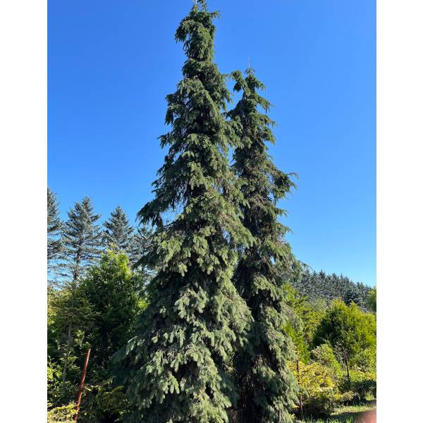 シンボルツリーに!均整のとれた狭円錐形となる枝垂れ品種 真鍋庭園さんの希少コニファー花木 庭木の苗/カナダトウヒ:ペンデュラ7号ポットカナダ原産のカナダトウヒの園芸品種で、枝垂れの品種では珍しく芯だけが直上して横枝はすべて枝垂れ、均整のとれた狭円錐形の樹形となります。葉は灰緑色です。シンボルツリーやガーデニングに適しています。学名Picea glauca'Pendula'タイプマツ科トウヒ属の耐寒性常緑低木(針葉樹)植付け適期11月〜3月樹高1.5〜4m、葉張り(横幅)は0.7〜1.5mです。栽培適地沖縄および南西諸島ををのぞく日本全国栽培方法:日当たりを好み、土質は選びません。肥沃で水はけのよい場所に向いています。腐葉土や有機肥料を混ぜ込んで植え付けてください。鉢植えでも栽培できます。剪定は1〜2月に、登頂部の芯は1本にし、円錐形の樹形からはみだしたり、膨らんだ部分は枝先を切って形を整えます。肥料は特に要りませんが、成長を早めたい場合は3月ころに緩効性肥料を根元に施します。お届けする苗は7号(直径21cm)ポット植え、樹高約30cm前後の苗です。樹高や葉張り、樹形につきましては、個体差があります。写真は苗木および成長時のイメージです。■この商品は第二配送センターよりお届けします。下記サービスについてはお受けできません。・メッセージカード・栽培ガイドの添付・ラッピング・代金引換決済・時間帯指定は地域によりご指定がお受けできない場合があります・配送業者の指定