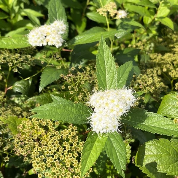 丈夫な低木・グランドカバーに花木 庭木の苗/シモツケ:白花シモツケ4号ポットバラ科シモツケ属の落葉低木です。株立ち状に育ち、白い小花が集まって可憐に咲きます。また、秋には紅葉も美しく、四季を通じて見所の多い品種です。切花、茶花にもよく用いられます。寄せ植えや大きな木の根締め、グランドカバーや庭木などに適しています。タイプ:バラ科シモツケ属の耐寒性落葉低木樹高:60〜80cm開花期:5〜9月植え付け適期:2〜4月、11〜12月日照:日向むき用途:庭植え、鉢植え栽培方法:日当たりのよい場所に植えてください。肥沃な土を好むので、植え付け時には腐葉土や堆肥をすきこんでください。2月ころにまるく刈り込むと形のよい株になります。枝が混んできたら太い枝を根元から切り取り、間引いて整えてください。2月または6月に挿し木でふやすことができます。お届けする苗は4号(直径12cm)ポット入り、樹高約20〜30cmです。樹高は多少変動することがあります。お届け時期により葉がきれいでない状態の場合があります。冬季は落葉状態でのお届けです。写真は開花時のイメージです。■この商品は第二配送センターよりお届けします。下記サービスについてはお受けできません。・メッセージカード・栽培ガイドの添付・ラッピング・代金引換決済・時間帯指定は地域によりご指定がお受けできない場合があります・配送業者の指定シモツケ:白花シモツケ4号ポットの栽培ガイドインテリアにおすすめの、縁起の良い観葉植物