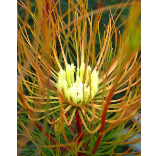 細長い独特の葉をもつネイティブプランツ 南アフリカ原産の常緑低木花木 庭木の苗/オーラックス:ブロンズヘイズ5号ポット南アフリカ原産の常緑低木。細長い独特の葉で、春から夏にかけて黄白色の羽毛状の花を咲かせ、枝葉の先端は秋から冬にかけてブロンズ色になります。軸が赤く、緑の葉との対比は独特の美しさで庭木や切花、ドライフラワーとして人気があります。切花にしてもとても長持ちします。学名Aulax cancellata 'Bronze Haze'タイプヤマモガシ科の半耐寒性常緑低木開花期5〜10月頃耐寒性-2度まで樹高1〜2m日照日向〜半日陰むき栽培方法:日当たりの良い場所で、排水の良い土を好みます。育てやすい品種ですが、耐寒性がやや弱いので庭植えは関東地方以南の太平洋側で。冬場は根元に腐葉土などでマルチングし、防寒してください。寒い地方では鉢植えにして冬季は室内にとりこんでください。肥料は控えめに与えます。お届けする苗は5号(直径15cm)ポット植え、樹高約30〜50cmです。樹高は多少変動することがあります。写真は成長・開花時のイメージです。■この商品は第二配送センターよりお届けします。下記サービスについてはお受けできません。・メッセージカード・栽培ガイドの添付・ラッピング・代金引換決済・時間帯指定は地域によりご指定がお受けできない場合があります・配送業者の指定