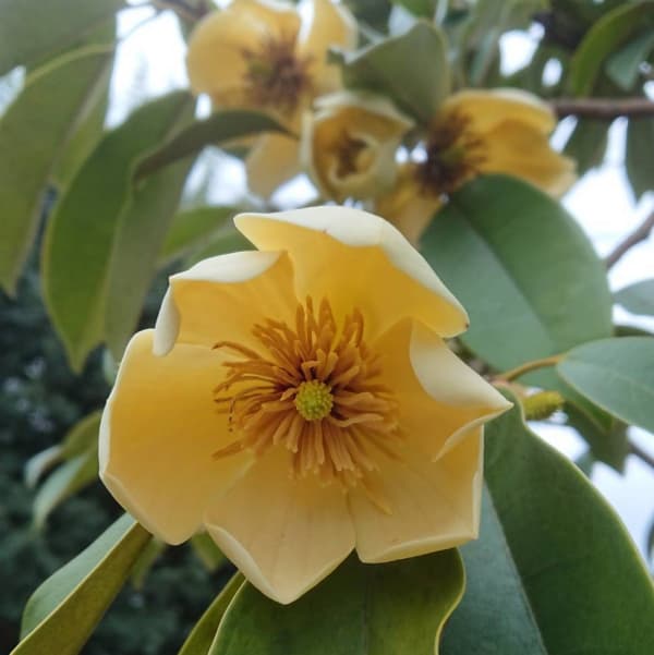 珍しい黄色の大輪花・黄花含笑(キバナガンショウ) 接ぎ木の匠・矢澤ナーセリー花木 庭木の苗/[送料無料]ミケリア:イエローキャンバス6号ポット深山含笑は中国湖南省などに自生するオガタマノキの仲間で、半八重のふっくらした芳香白花を木全体に咲かせます。この品種は来歴の詳細は不明ですが、中国原産かあるいは交配品種のオガタマノキ(ミケリア)の仲間でやわらかな明るいクリーム〜黄色の大輪一重花を咲かせる珍しい品種です。花にはよい芳香があります。耐陰性があるので、多少日陰の場所にも植えられます。寒さに弱いので、庭植えは関東地方以南で。タイプ:モクレン科常緑(半落葉)低木〜高木樹高:2〜8m開花時期:4〜5月日照:日向から半日陰栽培適地:関東地方以南土の乾湿:適湿栽培方法:日当たりの良い場所に植えつけますが、多少寒さに弱いので、寒冷地では鉢植えにします。明るい半日陰でも花を楽しめます。植えつけは春から9月にかけてがよく、秋から冬は避けてください。土質は選びませんが、水はけのよい場所に植えつけます。剪定は基部から生じる徒長枝を間引く程度。移植はむずかしいので、庭植えの場合はよく場所を選んでください。病害虫はほとんど見られません。お届けする苗は6号(直径18cm)ポット入り、樹高約40-80cm前後の苗です。樹高は多少変動することがあります。また冬季などお届け時期により葉がきれいでない状態の場合や落葉の状態の場合があります。写真は成長・開花時のイメージです。■この商品は、下記サービスについてはお受けできません。・日曜祝日指定・時間帯指定・メッセージカードの添付・代金引換決済■お届け地域について ・北海道へのお届けは、追加送料(実費)をいただく場合があります。沖縄・離島へのお届けはできません。 [送料無料]ミケリア:イエローキャンバス6号ポットの栽培ガイドマグノリア(モクレン・コブシ・大山レンゲの仲間)接木の匠・矢澤ナーセリーの接木樹木特集