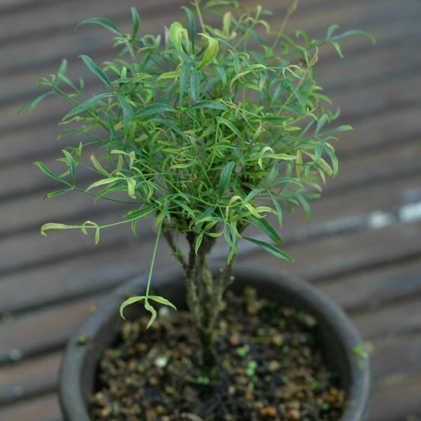 初売りセール山野草の苗/錦糸南天(キンシナンテン・琴糸南天):玉鶴(タマツル)2.5〜3号ポット小型で多幹性の琴糸南天(キンシナンテン)。江戸時代以降、古典園芸植物として楽しまれてきました。葉の形状や葉色、樹形など変異が多く、庭植えで楽しむ南天よりも性質は繊細、小型タイプなので鉢植えで楽しみます。タイプメギ科の耐寒性常緑低木栽培適地北関東地方以南日照日向むき用途寄せ植え、単品植え栽培方法:あまり寒い時期の植え付けは避けます。日陰でも良く生育しますが、日当たりの良い場所に植えて乾燥しやすい場所を避けます。夏は日よけをします。乾燥を嫌うので、特に鉢植えは土の表面が乾いたらたっぷりと水を与えます。冬に乾燥すると落葉してせっかくの葉を楽しめなくなるので注意しましょう。植え替えは春、2年おき位が目安です。写真は開花・成長時のイメージですが、お届けの際は苗の状態です。