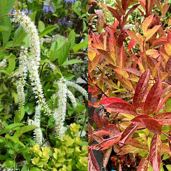 5〜6月開花 10~11月紅葉 花も紅葉も美しい低木花木 庭木の苗/コバノズイナ:ヘンリーズガーネット4.5号ポットコバノズイナ(小葉の髄菜)の洋種で、強健で育てやすく、花も紅葉も美しい北アメリカ原産の花木です。紅葉は別名紅葉木といわれるほど見事です。花はリョウブに似たブラシ状の白い小花が密集して細長い房状となり、木いっぱいに咲いてきれいで、芳香も楽しめます。ヘンリーズガーネットは、紫紅色の紅葉が美しく、樹高1m前後とコンパクトで、半日陰でも栽培できます。切り枝としても利用できます。学名:Itea virginica ‘Henry's Garnet'タイプ:ユキノシタ科ズイナ属の耐寒性落葉低木栽培適地:北海道南部以南樹高:1m内外開花期:5〜6月日照:日向〜半日陰むき4.5号(直径約13.5cm)ポット入り、樹高約30cmです。樹高は多少変動します。夏以降は、葉焼けのため葉があまりきれいな状態ではない場合があります。冬季は落葉状態でのお届けとなります。