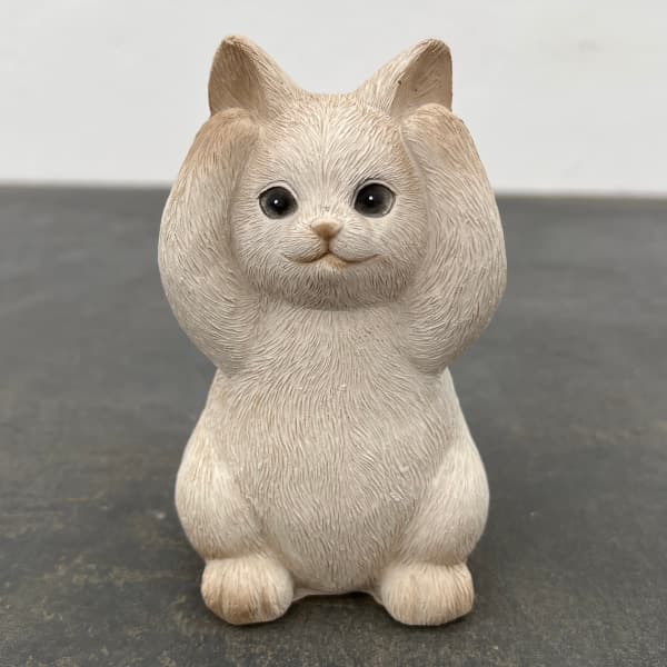 聞かざる猫レジンアニマル キャットA アイボリー(HG01IV)ポリレジンの小さな子猫のオブジェ。「見ざる、聞かざる、言わざる」の「聞かざる」のポーズです。サイズ:幅7×奥行7×高さ12cm材質:ポリレジンご注意:塗装は個体差があります。また小さなキズや変形がある場合があります。