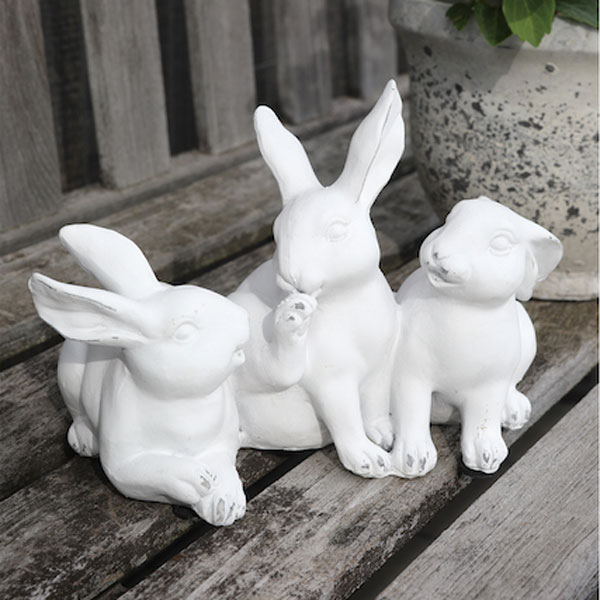 ポップ・フーミ?ラビット(QW-84)ウサギのガーデンオーナメント3羽のウサギが仲良く寄り添っている姿のオブジェ。その愛らしいフォルムが、空間に温かく和やかな雰囲気を演出します。ガーデニングスペースやベランダに置けば、自然の中に生き生きとしたアクセントを添えます。また、リビングや玄関先のディスプレイとしてもおすすめで、ホワイトカラーが清潔感があり、明るく軽やかな印象に見せてくれます。 サイズ(約):幅21cm、奥行き13.5cm、高さ16cm原産国:中国材質:ポリレジン