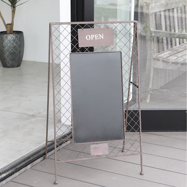風で倒れにくい 店舗のお知らせにブロア・メッシュサインボード(US-46)メッシュフレームとブラックボードが一体化したスタンドブラックボード。チョークでの書き込みや磁石での貼り付けが可能で、メニュー表やお知らせを貼り付けることができます。オープン・クローズのプレート付きで、サロンやカフェ、ショップの入り口やエントランスにぴったりです。メッシュ構造で風に倒れにくく、軽量設計なので屋外使用や持ち運びも簡単です。下部のプレートに店舗名を入れたカッティングシートを貼り付けることで、オリジナリティもお楽しみ頂けます。 サイズ(約):幅50cm、奥行き36.5cm、高さ85cm原産国:中国材質:スチール※写真はイメージです。※植物、撮影資材などは含まれておりません。■この商品はメーカー直送にてお届けのため、下記サービスについてはお受けできません。・日曜祝日指定・時間帯指定・メッセージカードの添付・代金引換決済■お届け地域について ・北海道、沖縄、離島へのお届けは、追加送料(実費)をいただきます。 ※メーカー直送品のため、タイミングにより欠品・入荷待ちとなる場合があります。ご注文前にお問い合わせいただけましたらご案内致します。欠品の場合はお届け時期等についてご相談をさせていただきます。