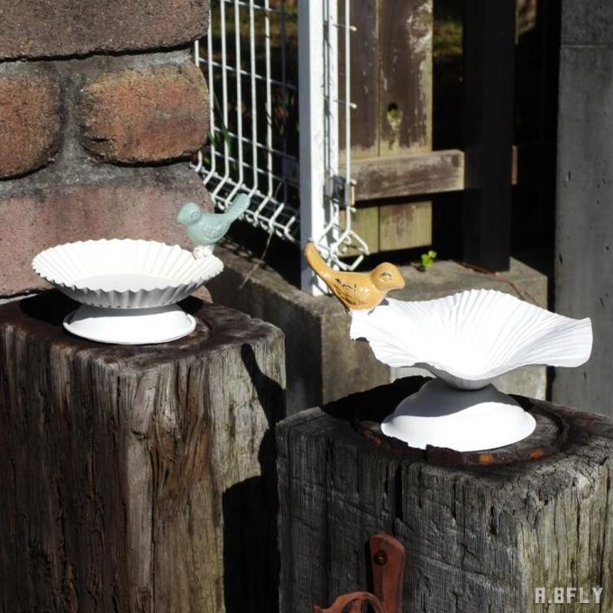 お庭に置くだけで様になるバードフィーダー。 小鳥のエサを入れると小鳥が食べにきます。 エサを入れなくても雨水が自然に溜まって水を飲みにやってきます。 素材 スチール サイズ Aタイプ:約 W170×H118×D170mm Bタイプ:約 W160×H80×D160mm 生産 Made in China 備考 ※ 商品の写真は、なるべく実物に近い状態になるよう努力しておりますが、光の具合やパソコンのモニターの種別、環境によっては、見え方が実際のものと多少異なって見える場合もございますので、ご了承ください。 ※ イメージ写真の小物等は商品に含まれておりません。 ※メタル、アイアンを使った製品について、使い込まれた風合いを出す為にわざと錆び加工や塗装やペイントに部分的な剥がれを施しています。アイアン、メタルの色ムラ等もアンティーク風、ハンドメイドの特徴としてご理解頂きます様お願い致します。