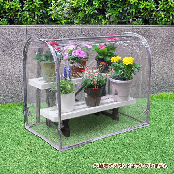 幅65cm×40×高さ55cmビニール温室グリーンキーパー ドーム型コンパクトベランダや小さなお庭にぴったりのビニール製簡易温室。大切な鉢植えを寒さや霜から守ります。道具を一切使わずパイプを差し込むだけで組立られます。「ドーム型コンパクト」は、鉢植えやプランターの上からすっぽりそのままかぶせるだけの簡単設置です。従来の「ドーム型」より一回り小さいサイズです。ベランダなど戸外での収納物の雨除け、ほこり除けとしても利用できます。※こちらのタイプはカバーにファスナーはありません※ペグ(留め具)が付いていますが、ベランダなどで使用できない、あるいは強風が吹く場所であればロープなどで固定してください。サイズ(約)幅65cm、奥行き40cm、高さ55cm材質・枠組パイプ/スチール(カラーコーティング)・ジョイント/ポリプロピレン・カバー/ポリ塩化ビニル・補強棒/スチール(カラーコーティング)・ペグ/スチール(カラーコーティング)