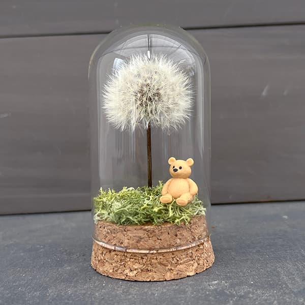 タンポポドームSサイズ(くま)高さ約9cm、直径約4.5cmガラスのドームに収められた美しいプリザのタンポポです。全てハンドメイドで可愛らしい仕上がりです。インテリアとしてもとても魅力的なアイテムです。サイズ:高さ約9cm、直径約4.5cm※写真はイメージです。