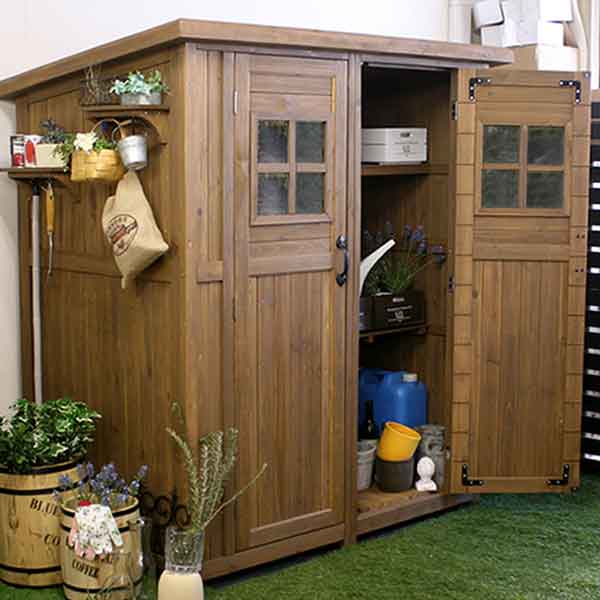 大型 木製収納庫・幅156cm、奥行き106cm、高さ162.5cm[送料無料]カントリー小屋大 ライトブラウン(DNS-0177LBR) アウトドア用品や灯油タンクなど!どんどん入ってスッキリ。あったかさ満点のホッとした気持ちになれる自然素材の収納庫は、スチール製より緑になじんでおしゃれ!置くだけで、まるで映画に出てくるような雰囲気のあるお庭に早変わり。扉と棚板の間に約20cmの隙間があり、長尺物も収納しやすい構造です。また、中の棚板が左右二分割になっており、片方or両方が取り外し可能なので、庫内を自由にアレンジできます。置き場所に困るもの、季節もの、防災グッズ、園芸用品、スポーツ・アウトドア用品、etc...ぜ〜んぶ収めてすっきりしたお庭に!商品名カントリー小屋 大型番ライトブラウン…DNS-0177LBRカラーライトブラウンサイズ本体:幅 約1560×奥行 約1060×高さ 約1625/1770mm棚板サイズ幅約680mm×奥行 約650mm(4枚)材質杉材天然木仕上げステイン塗装組立区分組み立て式生産国中国備考木屋根 PVC材(完全防水ではありません。)■お届け地域について ・北海道、沖縄、離島へのお届けは、追加送料(実費)をいただきます。ご注文/お問い合わせをいただきましてからお見積りしますので、ご了承ください。 ■メーカー直送品のため、下記サービスはお受けできません。・お届け時間帯指定(午前・午後のご希望は承りますが、状況によりずれる場合があります。夜間指定はできません)・一部の郡部での日曜・祝日指定・メッセージカードの添付・代金引換決済※写真はイメージです。