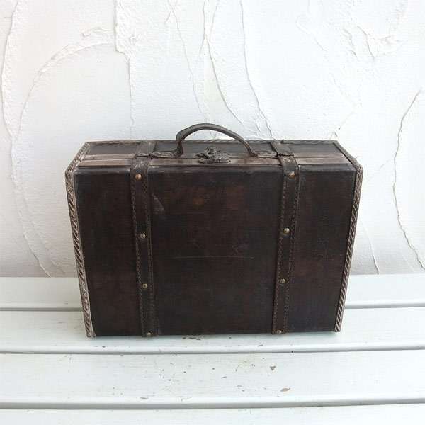 インテリアデコレーション・収納に!ウッデン・トランクボックス小 BO-03アンティークの旅行用トランクを模したインテリア用収納ボックス。お部屋の雰囲気作りにご利用ください。サイズ:幅36cm、奥行き24cm、高さ12cm(突起物含まず)内寸法:幅34cm、奥行き22cm、深さ8cm材質:木・合成皮革、アンティーク調※ディスプレイ及び収納商品の為、実際に持ち運ぶバックとしてのご使用はできませんのでご注意ください。