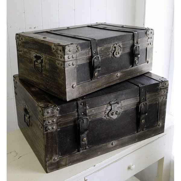 インテリア用収納ボックス ディスプレイにウッデン・トランクボックス 2点セットBO-01アンティークの旅行用トランクを模したインテリア用収納ボックス。お部屋の雰囲気作りにご利用ください。大小2個セットです。サイズ:L幅52.5cm、奥行き36.5cm、高さ23.5cm(突起物含まず) S幅47cm、奥行き31cm、高さ18cm(突起物含まず)内寸法:L幅50.5cm、奥行き34cm、高さ16cm S幅44.5cm、奥行き28.5cm、高さ11.5cm材質:木・合成皮革、アンティーク調※ディスプレイ及び収納商品の為、実際に持ち運ぶバックとしてのご使用はできませんのでご注意ください。■この商品はメーカー直送にてお届けのため、下記サービスについてはお受けできません。・日曜祝日指定・時間帯指定・メッセージカードの添付・代金引換決済■お届け地域について ・北海道、沖縄、離島へのお届けは、追加送料(実費)をいただきます。 ※メーカー直送品のため、タイミングにより欠品・入荷待ちとなる場合があります。ご注文前にお問い合わせいただけましたらご案内致します。欠品の場合はお届け時期等についてご相談をさせていただきます。