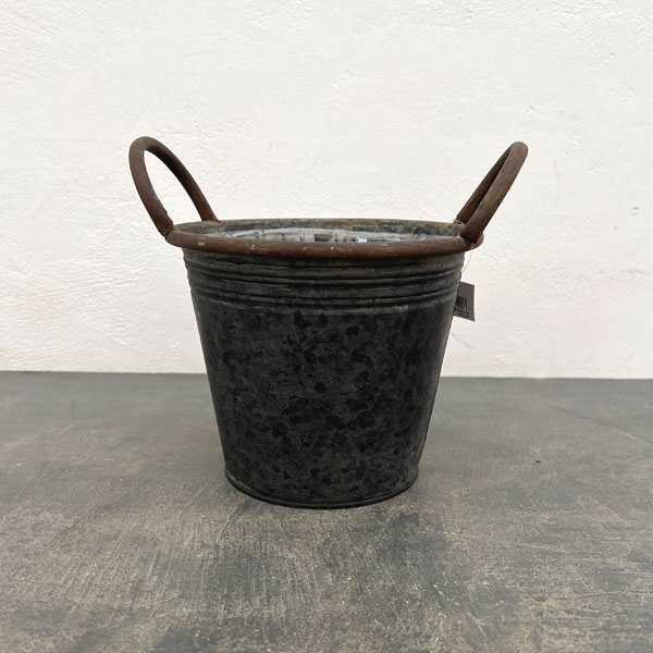PVCポット付 丈夫で軽いブリキ素材、手軽に使えるプランターブリキハンドルポット Lサイズ(BAGP1003L)「ブリキハンドルポット」は、素朴な風合いが魅力のポットです。室内の鉢カバーとして使ったり、お庭のハーブやグリーンを寄せ植えしてディスプレイしたり、小物をさっと収めたりと幅広く活躍します。ブリキ素材ならではのナチュラルな表情が、植物や雑貨の持ち味を引き立ててくれます。底穴がないタイプなので室内で使いやすく、付属のPVCポットに植え替えると移動やお手入れも簡単。ガーデニングを始めたばかりの方も、雑貨好きでインテリア性を重視される方にも、おすすめしたい一品です。商品サイズ(約) 直径18.5cm、高さ15cm素材ブリキ※写真はイメージです。※植物、撮影資材などは含まれておりません。