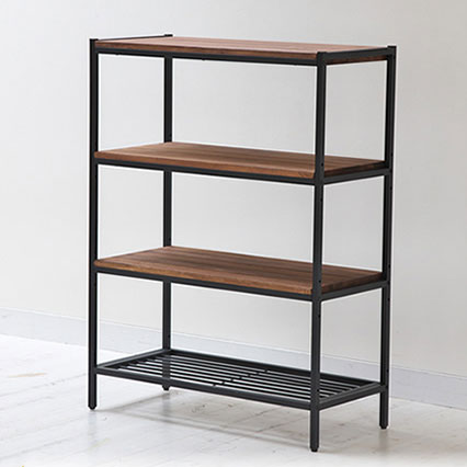 幅86cm、高さ114.5cm アイアン×パイン材に丁寧なオイル仕上げを施したシリーズ[送料無料]天然木製シェルフ4段(PR-860-4BRN) アイアン×パイン材に丁寧なオイル仕上げを施したシリーズ「BRICK(ブリック)」。温もりのある天然木の家具は、そこにあるだけでお部屋をやさしい表情に変えてくれます。板厚20mmのどっしりとしたパイン材を使用。突板や合板にはない、'本物'の良さがあり、長く使うほどに愛着と味わいが増すのが特徴です。天板は四方をアイアンで縁取った、ミッドセンチュリー風のモダンなデザイン。まるでおしゃれな路面ショップのように、お気に入りの生活雑貨をディスプレイできそう。下段はスチール製のため、強度は抜群。それでいて印象は軽やか。せまいお部屋でも圧迫感なくお使いいただけますよ。木のぬくもりが感じられる、なめらかなオイル塗装です。木目がはっきりと浮かび上がり、本来の美しさを引き出します。ナチュラルすぎず、ヴィンテージすぎない…。そんな、生活に溶け込む本物志向の家具を目指しました。 商品名天然木製シェルフ4段型番PR-860-4BRNカラーブラウンサイズ本体:幅 約860×奥行 約380×高さ 約1145mm天板厚約20mm調整ピッチ5ヶ所約50mm間隔重量約17.6kg材質パイン材、スチールパイプ仕上げオイル塗装(木部)、粉体塗装(スチール部)組立区分組み立て式生産国中国備考※天然木のため、節や、乾燥による割れが発生する場合があります。強度に問題はありませんので、安心してご使用ください。※入荷時期により、商品のデザイン・仕様が品質に差し支えない程度に予告なく変更される場合がございます。大きなデザインの変更はございませんが、ご注意ください。※写真はイメージです。※植物、撮影資材などは含まれておりません。■お届け地域について ・北海道、沖縄、離島へのお届けは、追加送料(実費)をいただきます。ご注文/お問い合わせをいただきましてからお見積りしますので、ご了承ください。 ■メーカー直送品のため、下記サービスはお受けできません。・お届け時間帯指定(午前・午後のご希望は承りますが、状況によりずれる場合があります。夜間指定はできません)・一部の郡部での日曜・祝日指定・メッセージカードの添付・代金引換決済