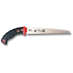※こちらの商品は少量在庫のため、メーカー倉庫より直送、もしくは取り寄せ後の発送となります※メーカー倉庫より直送の場合、代金引換便がご利用になれませんのでご了承くださいませ。 (代引きにてご注文いただいた場合、支払方法の変更をお願いすることがございます)※1〜3日前後(休業日を除く)で商品を発送させていただきますが、配送日および配送時間指定ができない場合がございます。※沖縄・離島へのお届けの場合は追加送料がかかります。※万が一、品切れ・製造終了・デザイン変更等があった場合には、すぐに店舗よりご連絡させていただきます。 類似商品はこちらシルキー・ズバット 330 替刃 3,718円シルキー・ズバット 300 6,523円シルキー・ズバット 270 6,270円シルキー・ズバット 240 6,028円シルキー・ズバット2段 1800 17,875円シルキー・ズバット2段 1500 16,797円シルキー・ズバット2段 1200 15,730円シルキー・ズバット 300 替刃 3,498円シルキー・ズバット 270 替刃 3,223円新着商品はこちら2025/12/9土壌団粒化資材『EB-aエコ』17,000円2025/10/11SK11・皿取錐用センタードリル 539円2025/10/11SK11・ラジアルボール盤 600W 91,080円再販商品はこちら2026/1/16スターエム・センター一発 2,123円2026/1/16スターエム・センター一発 2,123円2026/1/16スターエム・竹用ドリル 1,771円2026/01/16 更新 ズバット 330 (シルキー) もっとも理想的な剪定鋸。 ■ズバット 330 (シルキー)の特徴 【用途】造園・果樹園の剪定、林業の枝打、生木の剪定・枝打用鋸。【機能・特徴】カーブ刃が常に食い込む方向に働くため、力のロスがなく、引くだけで自然に切り込んでいきます。アサリなし鏡面研磨仕上げにより、切り口が絹の切れ肌に仕上り、樹木の腐り・病気を防止します。ハンドルのリードリングに落下防止用コードを取付け安全な作業ができます。動きを妨げない柔軟なベルトフックにより、軽快な作業を実現、また、ベルトを外さずにサヤを簡単に脱着できます。サヤの上下にローラーを装備したことでノコの出し入れが大変スムーズに行え、ロック機構によって逆さになってもノコが抜け落ちません。【仕様】●刃渡り:330mm。●目数(30mm):7.5枚目。●刃厚:1.5mm、切幅:1.4mm。●収納時サイズ:470×125×50mm。●使用時サイズ:465×110×25mm。●重量:480g。●アサリ無し・衝撃焼入・未来目。●ゴムハンドル・ハードクロームメッキ。【材質】●刃:鋼(SK−4)。●柄:加硫合成ゴム。 【商品サイズ】幅110×高さ510×奥行45mm 重量456g 【注意事項ほか】●刃物につき取り扱いには十分ご注意ください。●替刃は純正製品を使用してください。