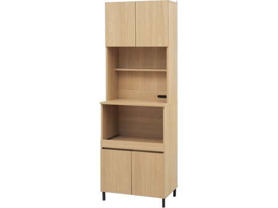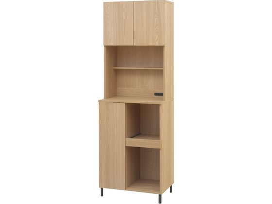 【商品説明】幅約60cm、奥行き約40cmの省スペースに設計。【本体上部】扉内は収納物に合わせて高さを調整可能。※本体下部も同様。オープンスペースは浅めの可動棚です。2口コンセント付き。【本体下部】下天板は熱、水、傷に強いメラミン樹脂を使用。大きなスライド棚は金属レールなので、スムーズに出し入れできます。スライド棚にもメラミン樹脂を使用しており、蒸気の出る調理家電も安心して置けます。【仕様】●「住環境に合わせた商品サイズの適正化」×「機能(伸長・収納)」×「質感・デザイン」にこだわったLDKシリーズ●商品サイズ(約)本体外寸:幅約595×奥行約398×高さ約1767mm●耐荷重(約):全体71kg、本体上部:天板5kg、固定棚板5kg、可動棚板(小)2kg、可動棚板(大)1枚あたり5kg、本体下部:天板20kg、スライド棚5kg、可動棚板1枚あたり7kg、底板10kg■本体上部○扉内収納内寸(約):559×260×359mm○オープンスペース内寸(約):559×248×499mm○扉内収納の棚:可動棚板2枚、約32mm間隔で5段階可動○オープンスペースの棚:可動棚板1枚、約32mm間隔で9段階可動○定格電圧:AC100V○定格周波数:50Hz/60Hz○消費電力合計:1500Wまで■本体下部○スライド棚内寸(約):533×364×338mm○扉内収納内寸(約):559×364×340mm○扉内収納の棚:可動棚板2枚、約32mm間隔で5段階可動●注文単位:1台【備考】※メーカーの都合により、パッケージ・仕様等は予告なく変更になる場合がございます。【検索用キーワード】irisohyama アイリスオーヤマ あいりすおーやま アイリス あいりす キッチンキャビネット ナチュラル キッチンキャビネット ナチュラル きっちんきゃびねっと なちゅらる キッチンキャビネット キャビネット きゃびねっと 収納 W595×D398×H1767mm 台 食器 キッチン用品収納 キッチン 木目 炊飯器 KCB−590BT 厨房用品 ワゴン・棚・収納 str_02 R8565Dライフスタイルに合わせてお好みのボードが選べる、キッチンキャビネットです。