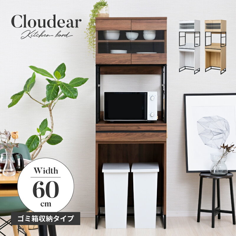【商品名】 ◆Cloudear 食器棚 ゴミ箱収納タイプ幅60cm 【サイズ】 ◆本体外寸:幅約60×奥行約45×高さ約179.5cm ◆ガラス扉内寸:幅約52.5(最大56)×奥行約41×高さ約33.5(最大35.5)cm ◆オープンスペース内寸:幅約56×奥行約42(最大43)×高さ約48(最大50)cm ◆引き出し内寸:幅約51×奥行約38.5×高さ約6.5(最大11)cm ◆ゴミ箱収納部内寸:幅約56×奥行約38.5×高さ約73cm 【耐荷重】 ◆オープンスペース天板:25kg ◆ガラス扉収納 可動棚:10kg ◆引出し:5kg 【材質】 ◆本体:プリント紙化粧合板 ◆オープンスペース天板:合成樹脂化粧合板(PVC) ◆フレーム:鉄 【その他仕様】 ◆2口コンセント付き(合計1500W) 【梱包数】 ◆2 【備考】 ◆お客様組立品です。プラスドライバーをご使用下さい。 ◆お使いのモニターによって商品の明るさや色が多少異なって見える場合がございます。 ◆配送料金は地域により異なる場合があります。 ◆商品の仕様は予告なく変更になる場合があります。 ◆本商品は当店オリジナル商品です。 【関連ワード】 moca company クラウディア ゴミ箱 上 ラック ゴミ箱収納 カップボード インダストリアル ゴミ箱 収納 キッチンラック ゴミ箱上収納ラック ゴミ箱上食器棚 ダストボックス カウンター スチールラック 省スペース 収納棚 幅60cm 幅60 60幅 高さ 180 ホワイト ブラウン ナチュラル ウォールナット 白 モダン\Cloudearシリーズ おすすめ商品/ 食器棚 ゴミ箱収納タイプ幅120cm カップボード 引出しタイプ 幅90cm 食器棚幅120cm 食器棚幅90cm Cloudearシリーズ一覧はこちら >