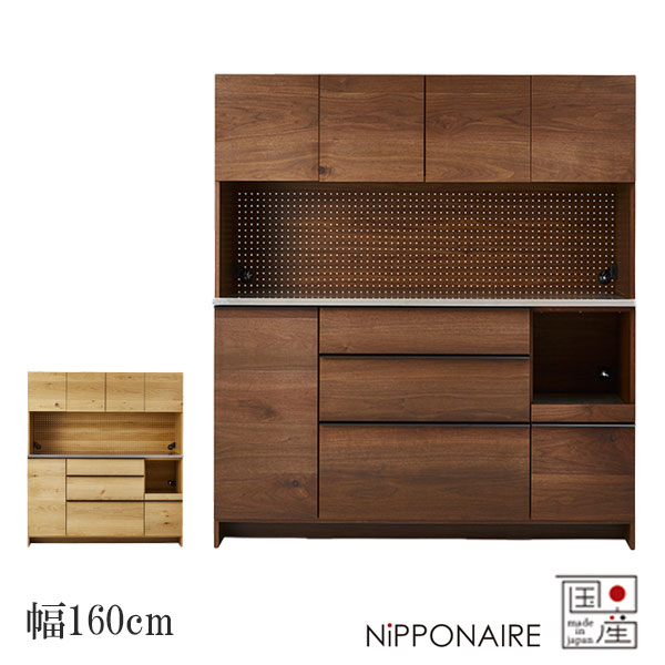 商品説明 サイズ(cm) W160×D48×H180 カラー WN(ウォールナット節有) OAK(オーク節有) 仕様 □材質 [WN] 前板:ウォールナット節有突板 側面:WN色プリント [OAK] 前板:ホワイトオーク節有突板 側面:OAK色プリント [共通] カウンター天板:ステンレス スライドカウンター天板:メラミン化粧板(本体同色) 取っ手:アルミ製 □仕様 ・オイル塗装 ・上台の開き扉:耐震ラッチ付き、棚板付き(60mmピッチ/3段階調整) ・下台左開き扉:棚板3枚付き(60mmピッチ/8段階調整) ・オープン上部、スライドカウンター上部: 調湿・消臭機能をもつMOISS(モイス)合板使用 ・引出し:Hettich社(ドイツ)のソフトクローズレール使用 送料 送料無料 ただし、北海道、沖縄、離島は追加料金がかかります。お気軽にお問合せ下さい。.