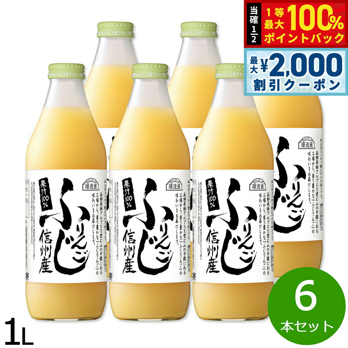 信州ふじストレート100%果肉なしタイプ商品名順造選 信州産ふじりんごブランド順造選名称りんごジュース(ストレート)原材料りんご、酸化防止剤(ビタミンC)栄養成分表示エネルギー46kcal、たんぱく質0g、脂質0g、炭水化物12g、食塩相当量0.0g/100mlあたり賞味期限12ヶ月保存方法直射日光を避け、常温で保存して下さい。開封後は要冷蔵。内容量1L×6本セットカロリー46kcal/100mlあたり大きさW86mm×D86mm×H265mm生産国日本原産国日本本体重量8.46kgメーカー名マルカイコーポレーション株式会社製造所株式会社なかひら農場順造選 信州産ふじりんご信州ふじストレート100%果肉なしタイプ