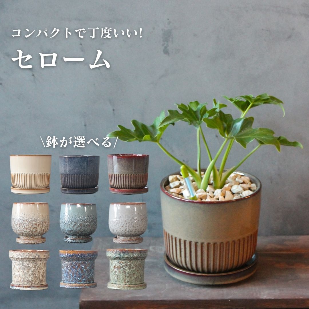 商品情報最短出荷日翌営業日から2?3日後に出荷。ご注文より5?7営業日後のお届けコンパクトなセローム 観葉植物 鉢が選べる 5号鉢 受け皿付き 個体お任せ コンパクトなセローム!葉に大きく切り込みが入っておしゃれ♪ 鉢が選べます。 5