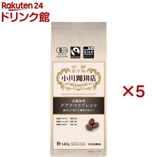 お店TOP>水・飲料>コーヒー>レギュラーコーヒー>レギュラーコーヒー(豆)>小川珈琲店 有機珈琲 グアテマラブレンド 豆 (140g×5セット)商品区分:有機JAS認定【小川珈琲店 有機珈琲 グアテマラブレンド 豆の商品詳細】●香ばしい苦味と濃厚な味わい【召し上がり方】・一人あたり(カップ120ml)につき、7〜10gのコーヒー(粉)がめやすです。分量はお好みに合わせて増減してください。・抽出器具を使用してお召し上がりください。【品名・名称】有機レギュラーコーヒー(豆)【小川珈琲店 有機珈琲 グアテマラブレンド 豆の原材料】有機コーヒー豆(生豆生産国名:グアテマラ、ホンジュラス、エチオピア)【栄養成分】なし【アレルギー物質】なし【保存方法】高温多湿、直射日光を避け保存してください。【注意事項】熱湯を扱いますので火傷にご注意ください。開封後は早めにお召し上がりください。開封後は袋の口をしっかりと閉じ、密封できる容器に入れて、できるだけ早めにお召し上がりください。コーヒー豆の表面が濡れているように見えることがありますが、これは豆の脂質分であり、製品の品質には問題ありません。この商品は豆です。抽出器具にあった挽き方でご使用ください。お届けする商品の賞味期限(消費期限)は最短で2026年02月25日となっております。【ブランド】小川珈琲店【発売元、製造元、輸入元又は販売元】小川珈琲本品は、在庫限りで販売終了となります。賞味期限(消費期限)が通常販売時より短めになっているため、ご了承のうえお買い求めいただけますようお願い致します。※説明文は単品の内容です。リニューアルに伴い、パッケージ・内容等予告なく変更する場合がございます。予めご了承ください。・単品JAN:4970690000627小川珈琲京都市右京区西京極北庄境町75番地0120-077-800広告文責:楽天グループ株式会社電話:050-5577-5043[コーヒー/ブランド:小川珈琲店/]