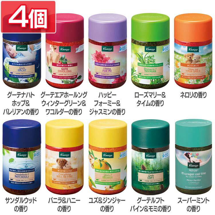 ≪グーテナハト_ホップ&バレリアンの香り≫◆「グーテナハト」とは、ドイツ語で「おやすみ」の意味。◆独特でスパイシーな香りのホップとバレリアンは、ヨーロッパでは「眠りのハーブ」として知られています。◆深いブルーのお湯にゆったり浸かれば、やすらかな夜へといざなわれます。≪グーテエアホールング_ウィンターグリーン&ワコルダーの香り≫◆鎮痛効果に優れた2つのメディカルハーブを配合。◆ウィンターグリーンは、サリチル酸メチルを多く含み、鎮痛効果に優れたハーブ。◆ワコルダーは、シップのような独特な香りで、血行の促進及びデトックスに優れていると言われています。◆肩のこり、腰痛、疲労回復、神経痛、リウマチ、冷え症、うちみ、くじき、しっしん、しもやけに。◆「グーテエアホールング」とは、ドイツ語で「お大事に」という意味。◆医薬部外品≪ハッピーフォーミー&ジャスミンの香り≫◆天然岩塩に、ロータス(ハス)とジャスミンの植物エキスを配合したバスソルト。◆オリエンタルで上品な花々の香りで、ゆったりと穏やかな時間が流れるリゾート気分のバスタイムを。≪ローズマリー&タイムの香り≫◆ローズマリーとタイムから抽出した天然植物成分を配合。◆爽やかで清々しい香りに包まれながら、がんばった一日の終わりにリフレッシュバスタイムを。≪ネロリの香り≫◆あしたも笑って。Show me your smile◆柑橘系の爽やかさとフローラルのやわらかさをあわせもつ、ネロリの精油を配合。◆不安や緊張、ストレスでこわばった気持ちを包み込み、明るい気分へと導いてくれます。◆やさしくてどこか懐かしいネロリの香りに包まれながら、晴れやかな楽園でリラックスするようなバスタイムを。≪サンダルウッドの香り≫◆こだわりの天然岩塩に、リラックス効果の高い2種類のハーブ配合したバスソルト。≪バニラ&ハニーの香り≫◆きっとうまくいくよ。Everything will be fine◆バニラ果実エキス、マカデミアナッツオイル、ハチミツエキス配合。◆お肌をしっとりと整えながら、ふんわり甘い香りに包まれて、ストレスの多い毎日にやすらぎのバスタイムを。◆多くの皆さまのご要望を受けて、2017年についに定番品となった「バニラ&ハニーの香り」。◆励ましたい友達、勇気づけたい同僚、試験や面接など何かにチャレンジする人へ、がんばっての気持ちをこめて。≪ユズ&ジンジャーの香り≫◆こだわりの天然岩塩にユズとジンジャーの天然植物成分を配合したバスソルト。◆爽やかでほろ苦いユズに、ピリッとスパイシーなジンジャーをブレンドした香りで、全身にぬくもり巡る発汗バスタイムを。≪グーテルフト_パイン&モミの香り≫◆パイン(松の木)とモミのエッセンシャルオイルを配合した、ドイツ語で「よい空気」という意味のバスソルト。◆目を閉じてゆっくり深呼吸すれば、そこはまるで森のよう。◆すがすがしい木々のオイルをお風呂の蒸気でゆっくり吸い込んで、日々の疲れやストレスを解きほぐし、森林浴をしたようにリフレッシュ。≪スーパーミントの香り≫◆4種の天然ミントとメントールで肌の表面をクールダウンさせてくれるバスソルトです。◆爽快感あふれるクールなバスタイムを楽しめます。※リニューアルに伴い、パッケージ・内容等予告なく変更する場合がございます。予めご了承ください。●パッケージサイズ(cm)幅約9.4×奥行約9.4×高さ約16.9●内容量850g●原産国ドイツ≪グーテナハト_ホップ&バレリアンの香り≫●商品区分化粧品●成分塩化Na、香料、ホップ球果エキス、コウスイガヤ油、セイヨウカノコソウ根油、ダイズ油、トコフェロール、カンフル、ポリソルベート20、炭酸Na、青2≪グーテエアホールング_ウィンターグリーン&ワコルダーの香り≫●商品区分医薬部外品●成分有効成分…塩化Na、炭酸Naその他の成分…オレオイルメチルタウリンNa、香料、ラウリン酸POE(20)ソルビタン、赤102≪ハッピーフォーミー&ジャスミンの香り≫●商品区分化粧品●成分塩化Na、香料、ハス花エキス、ソケイ花エキス、オレンジ果皮油、コメヌカ油、バニラ果実エキス、ポリソルベート20、トリ(カプリル酸/カプリン酸)グリセリル、グリセリン、水、赤2、青2、トコフェロール≪ローズマリー&タイムの香り≫●商品区分化粧品●成分塩化Na、香料、ローズマリー葉油、タチジャコウソウ花/葉油、ユーカリ葉油、アーモンド油、ダイズ油、トコフェロール、カンフル、ポリソルベート20、緑401≪ネロリの香り≫●商品区分化粧品●成分塩化Na、香料、ビターオレンジ花油、オレンジ果皮油、パチョリ油、レモン果皮油、アーモンド油、ポリソルベート20、ジプテリクスオドラタ種子エキス、グリセリン、水、トコフェロール、黄5、赤102≪サンダルウッドの香り≫●商品区分化粧品●成分塩化Na、香料、シャムアンソクコウノキ樹脂エキス、プテロカルプスソヨウキシ木エキス、パチョリ葉油、アーモンド油、ダイズ油、トコフェロール、グリセリン、水、安息香