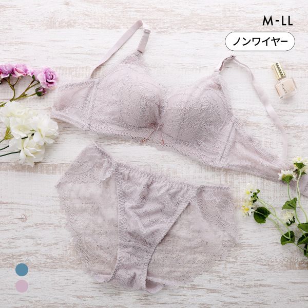 サイズ レディースM/M(バスト79-87cm ヒップ87-95cm)L/L(バスト86-94cm ヒップ92-100cm)LL/LL(バスト93-101cm ヒップ97-105cm)※ブラサイズ/ショーツサイズ カラー GG-グレージュ、BU-ブルー 素材 【ブラ】ナイロン ポリエステル その他【ショーツ】ナイロン 綿 その他 仕様 【ブラ】・脇高設計・ホック:3段4列・3/4カップ・内蔵パッド入り、パッドポケットなし・肩紐取外し:不可・ワイヤーなし・サイドボーンあり【ショーツ】・伸縮性:あり・クロッチ:付き・透感:あり 関連ワード 250924 3/4カップブラジャー ブラセット ブラジャーセット ブラショーツセット ブラ&ショーツセット ブラジャー&ショーツ 上下セット 下着セット フルバック パンツ ノンワイヤーブラジャー ワイヤレスブラ ワイヤーなし ノーワイヤー 女性用 バックレースメルトココ 谷間キープ ふわとろカップ プランジノンワイヤーブラ ブラセット 脇スッキリ ブラジャー ショーツ セット 脇高ふわとろカップでふっくら美胸に。とろける着けごこちの【メルトココ】ノンワイヤーブラセットです。Point.1 谷間キープ前中心が低く、バストを中心に集めやすいプランジタイプのノンワイヤー。バストを自然に集めます。Point.2 脇スッキリ脇のぷよ肉をホールドする脇高設計で、バストをグッと寄せて谷間をキープ。Point.3 ふわとろカップずっと触っていたくなる、さわり心地の良いふわとろカップで美胸をキープ。土台一体型のカップなのでズレにくく、優しくフィットします。Point.4 高い安定感3段4列のホック&やわらかなチュールパワーネットにレースを重ねたW使いのバックベルトで、しっかりと安定感のあるつけ心地です。やさしいくすみカラーのシアーレースが大人フェミニンなデザイン。総レース仕様で透け感が美しく、お洋服にもひびきにくく仕上げています。機能も可愛さも、着け心地まで両立できる優秀ブラセットです。