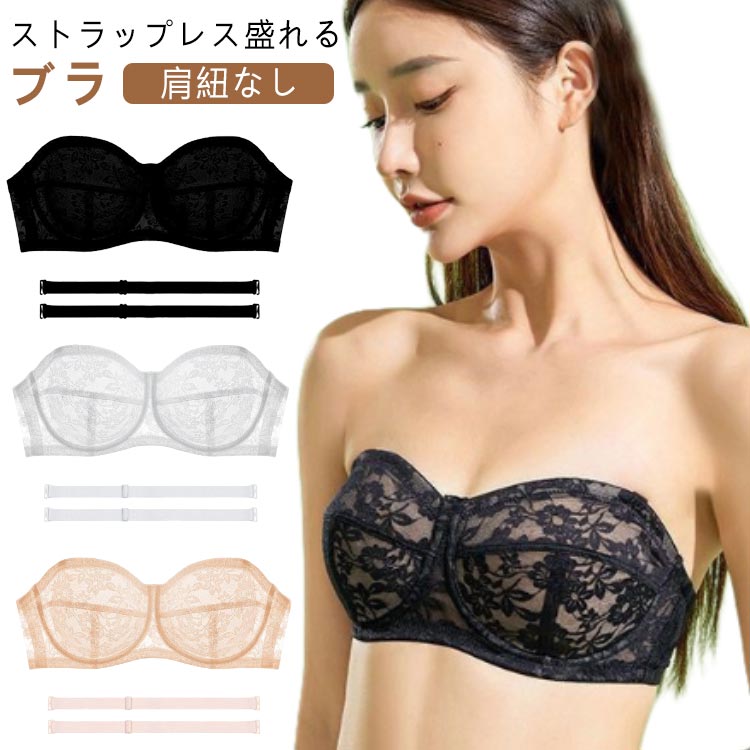 かわいいスカラップデザイン、ずれにくいのに盛れるストラップレスブラ。ストラップレスだと谷間に自信が持てない時にはフロントホックで谷間をメイク、ワイヤーレスで優しい着け心地。シームレスで響きにくく、綺麗なシルエットにカップ部分は柔らか素材で通気性があり汗ばむ季節も快適。ストラップレスは肩や背中開いた服やドレスの時だけでなく肩紐の食い込みや肩こりのお悩みも解決。オフショルダー、キャミソール、どんな装いにも合わせやすく、幅広いシーンで大活躍するストラップレスブラジャー。ストラップ付きなので、普通のブラジャーにも変身可能! サイズ70A 70B 75A 75B 80A 80B 85A 85Bサイズについての説明70A:70A 70B:70B 75A:75A 75B:75B 80A:80A 80B:80B 85A:85A 85B:85B ※商品のサイズは手作業で測定させて頂いておりますので、若干の誤差があります。素材ポリエステル色前レッド 前ベージュ 前ブラック備考 ●サイズ詳細等の測り方はスタッフ間で統一、徹底はしておりますが、実寸は商品によって若干の誤差(1cm〜3cm )がある場合がございますので、予めご了承ください。 ●商品の色は、撮影時の光や、お客様のモニターの色具合などにより、実際の商品と異なる場合がございます。あらかじめ、ご了承ください。●製品によっては、生地の特性上、洗濯時に縮む場合がございますので洗濯時はご注意下さいませ。▼色味の強い製品によっては他の衣類などに色移りする場合もございますので、速やかに(脱水、乾燥等)するようにお願いいたします。 ▼生地によっては摩擦や汗、雨などで濡れた時は、他の製品に移染する恐れがございますので、着用の際はご注意下さい。▼生地の特性上、やや匂いが強く感じられるものもございます。数日のご使用や陰干しなどで気になる匂いはほとんど感じられなくなります。