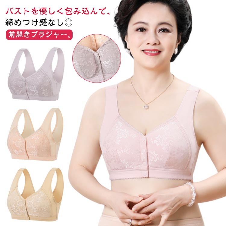 前開きブラジャー。バストを優しく包み込んで、締めつけ感なし◎ラクラク授乳できる前開きブラが登場。着脱が簡単なフロントボタンタイプ。授乳時もスムーズに対応◎ストレスフリーな着用感!軽量で付けている感覚が少ないつくり。締めつけが苦手な方にもぴったりな、ノンワイヤー仕様。カップ部分内側は柔らかな生地感で、お肌が敏感な時期も安心。サイドからバック、ショルダー部分に伸縮性の高い生地を使用。自分サイズにフィットして、産前から産後まで長く使えるのが嬉しい!ナイトブラとしても活躍!睡眠を妨げない軽い付け心地。ナイトブラとして使うのもおすすめ。 サイズ 80B 85B 90B 95B 100B 105C 110C サイズについての説明 サイズ:写真通り※上記サイズは平置き実寸になります。サイズ表の実寸法は商品によって1-3cm程度の誤差がある場合がございます。 素材 綿 ナイロン 色 ピンク パープルグレー ベージュ ライトピンク 備考 ●サイズ詳細等の測り方はスタッフ間で統一、徹底はしておりますが、実寸は商品によって若干の誤差(1cm〜3cm )がある場合がございますので、予めご了承ください。 ●商品の色は、撮影時の光や、お客様のモニターの色具合などにより、実際の商品と異なる場合がございます。あらかじめ、ご了承ください。 ●製品によっては、生地の特性上、洗濯時に縮む場合がございますので洗濯時はご注意下さいませ。 ▼色味の強い製品によっては他の衣類などに色移りする場合もございますので、速やかに(脱水、乾燥等)するようにお願いいたします。 ▼生地によっては摩擦や汗、雨などで濡れた時は、他の製品に移染する恐れがございますので、着用の際はご注意下さい。 ▼生地の特性上、やや匂いが強く感じられるものもございます。数日のご使用や陰干しなどで気になる匂いはほとんど感じられなくなります。