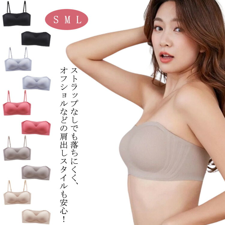 ズレにくく、ホールド力抜群の美胸ストラップレスブラ。通気性のある素材を採用してデザインした夏人気アイテム。ひんやり接触冷感素材を採用し、触れるだけでなく爽快なつけ心地◎屈んで時に気になる谷間見えの心配も解消!見えてもオシャレなホック付きベアトップブラ。無縫製のシームレス設計で、薄着の時もインナーラインに気にせず、響きにくい。チラ見え防止!フィットネス、ヨガ、ベリーダンスのインナーとしても可愛いアイテムです◎ パーティードレスやワンピースのインナーに最適です。 サイズM(2枚セット) L(2枚セット)サイズについての説明【M】バスト68-95cm 体重40-65kg 【L】バスト78-106cm 体重60-90kg素材レーヨン ナイロン色セット1 セット2 セット3 セット4 セット5 セット6備考 ●サイズ詳細等の測り方はスタッフ間で統一、徹底はしておりますが、実寸は商品によって若干の誤差(1cm〜3cm )がある場合がございますので、予めご了承ください。 ●商品の色は、撮影時の光や、お客様のモニターの色具合などにより、実際の商品と異なる場合がございます。あらかじめ、ご了承ください。●製品によっては、生地の特性上、洗濯時に縮む場合がございますので洗濯時はご注意下さいませ。▼色味の強い製品によっては他の衣類などに色移りする場合もございますので、速やかに(脱水、乾燥等)するようにお願いいたします。 ▼生地によっては摩擦や汗、雨などで濡れた時は、他の製品に移染する恐れがございますので、着用の際はご注意下さい。▼生地の特性上、やや匂いが強く感じられるものもございます。数日のご使用や陰干しなどで気になる匂いはほとんど感じられなくなります。