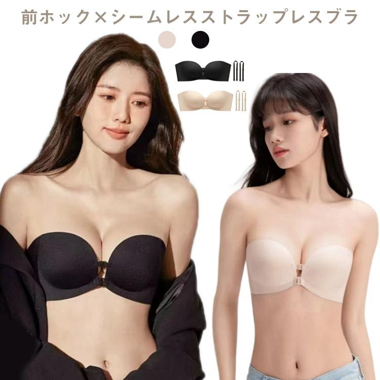 かわいいスカラップデザイン、ずれにくいのに盛れるストラップレスブラ。ストラップレスだと谷間に自信が持てない時にはフロントホックで谷間をメイク、ワイヤーレスで優しい着け心地。シームレスで響きにくく、綺麗なシルエットにカップ部分は柔らか素材で通気性があり汗ばむ季節も快適。ストラップレスは肩や背中開いた服やドレスの時だけでなく肩紐の食い込みや肩こりのお悩みも解決。オフショルダー、キャミソール、どんな装いにも合わせやすく、幅広いシーンで大活躍するストラップレスブラジャー。ストラップ付きなので、普通のブラジャーにも変身可能! サイズ 70A 70B 75A 75B 80A 80B 85A 85B サイズについての説明 70A:70A 70B:70B 75A:75A 75B:75B 80A:80A 80B:80B 85A:85A 85B:85B ※商品のサイズは手作業で測定させて頂いておりますので、若干の誤差があります。 素材 ポリエステル 色 前レッド 前ベージュ 前ブラック 備考 ●サイズ詳細等の測り方はスタッフ間で統一、徹底はしておりますが、実寸は商品によって若干の誤差(1cm〜3cm )がある場合がございますので、予めご了承ください。 ●商品の色は、撮影時の光や、お客様のモニターの色具合などにより、実際の商品と異なる場合がございます。あらかじめ、ご了承ください。●製品によっては、生地の特性上、洗濯時に縮む場合がございますので洗濯時はご注意下さいませ。▼色味の強い製品によっては他の衣類などに色移りする場合もございますので、速やかに(脱水、乾燥等)するようにお願いいたします。 ▼生地によっては摩擦や汗、雨などで濡れた時は、他の製品に移染する恐れがございますので、着用の際はご注意下さい。▼生地の特性上、やや匂いが強く感じられるものもございます。数日のご使用や陰干しなどで気になる匂いはほとんど感じられなくなります。