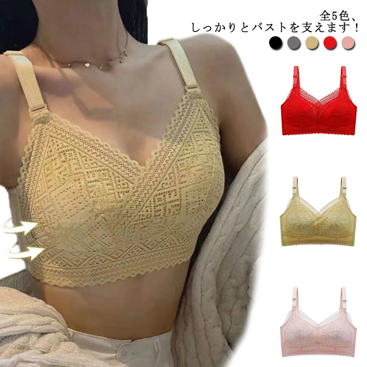 ノンワイヤーのような楽ちんなつけ心地のラクブラ。エレガントな美しいレース。ナチュラルな盛り感がお好みの方にぴったり! サイズ70AB 75AB 80AB 85ABサイズについての説明70AB 75AB 80AB 85AB素材ポリエステル&ポリウレタン色カラー1 カラー2 カラー3 カラー4 カラー5備考注意★洗濯時、色落ちがございます。他の物とのお洗濯もお控えくださいませ。湿気を含んだ状態や水を含んだまま放置しないでください。この製品は洗濯で若干縮むことがあります。洗濯機は使用できません。※ベージュ×モカのみ使用糸の関係上、風合いが少々異なります。 ●綿混合商品は洗濯時に多少縮む事がございます。 ●本製品は生産過程におきまして、生地を織る際の糸の継ぎ目や多少のほつれが生じることがありまが、品質上は問題ありません。また、生地の織りに他繊維が混紡している場合もございます。▼色落ちの恐れがございますので、他のものとは分けて洗濯してください。▼タンブラー乾燥はお避け下さい。▼洗濯の際は他の物と区別して、漂白剤を避け、手洗いを お勧めします。